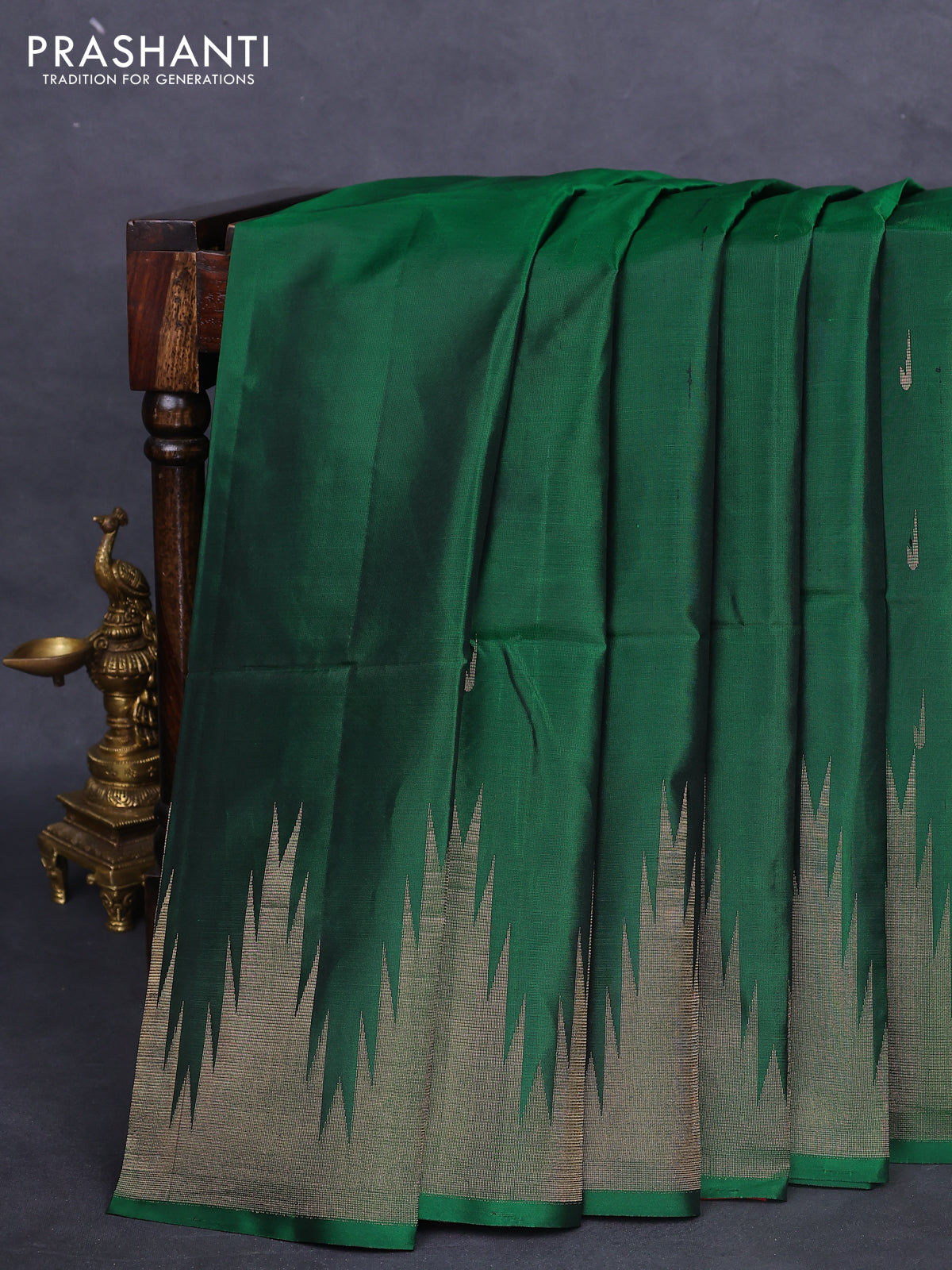 Pure soft silk saree green and dual shade of pinkish orange with zari woven muniya buttas and temple design zari woven border