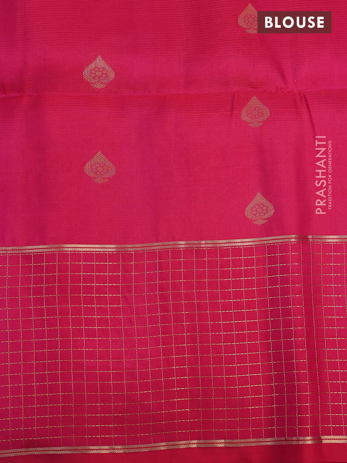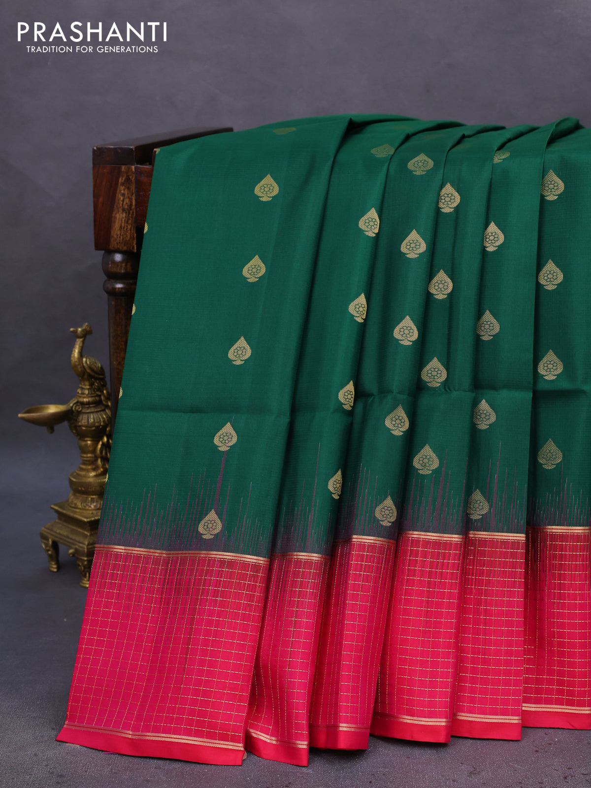 Pure soft silk saree green and pink with zari woven buttas and zari woven checked border