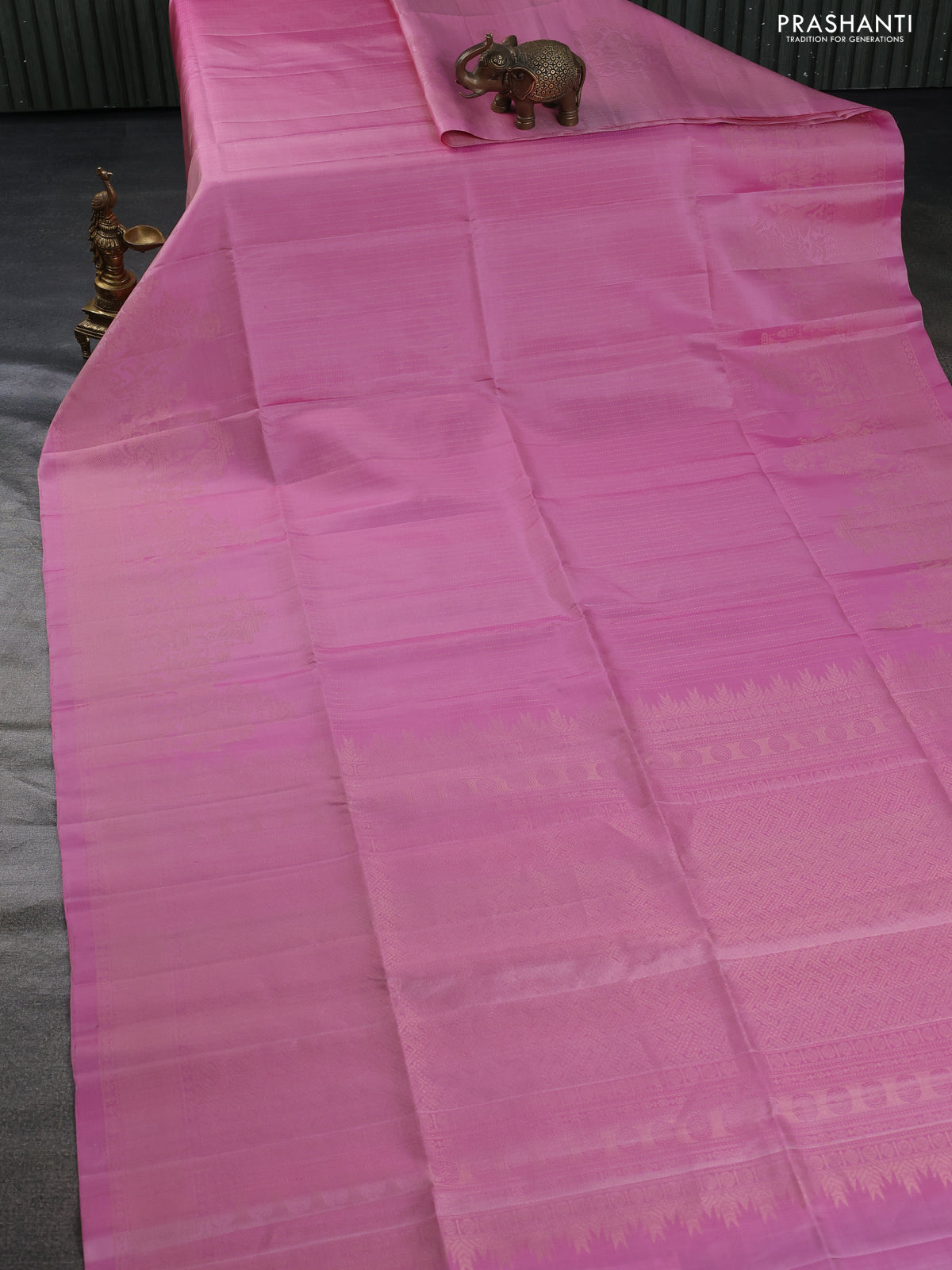 Pure soft silk saree light pink with allover zari weaves and long rich zari woven border