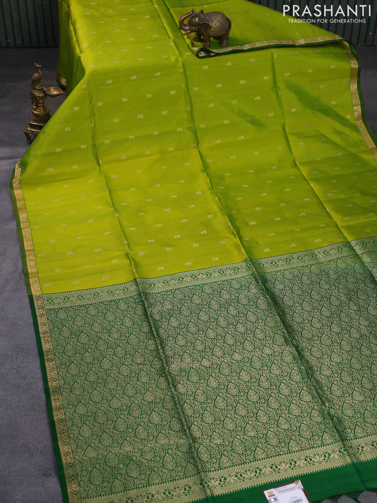 Pure soft silk saree lime green and green with zari woven buttas and zari woven border