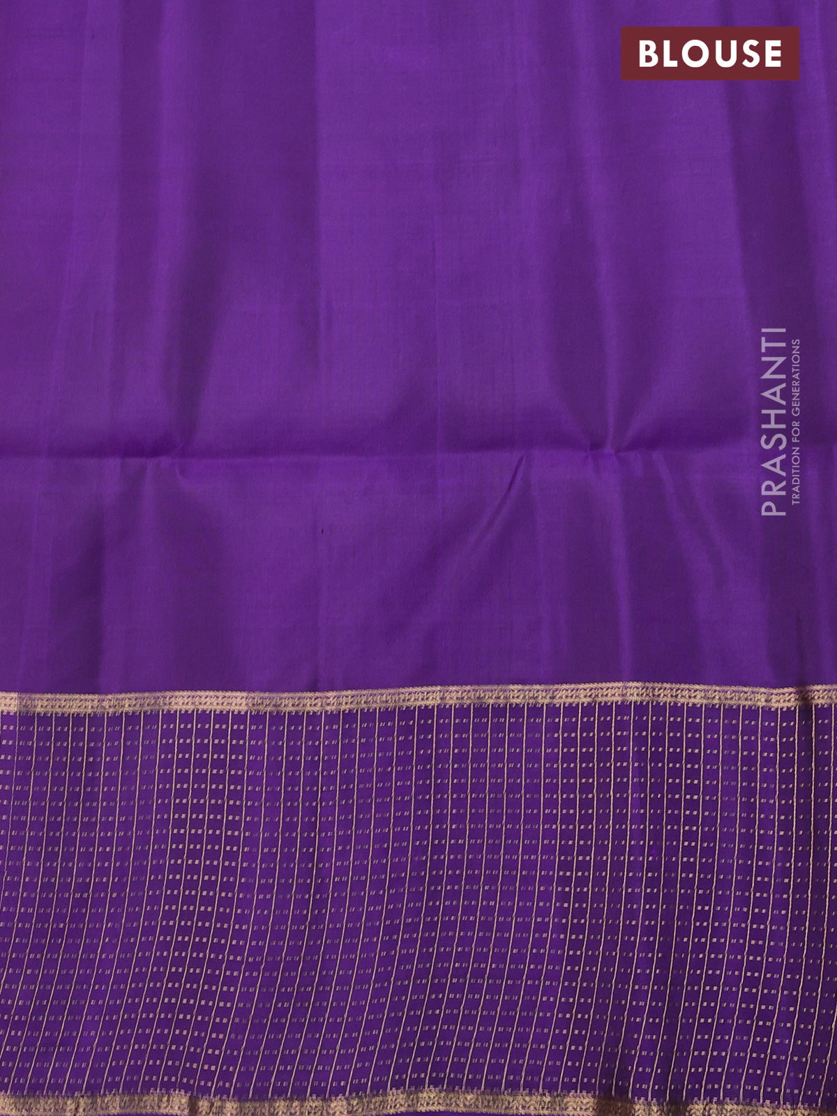Pure soft silk saree lime yellow and violet with zari woven buttas and zari woven checked border
