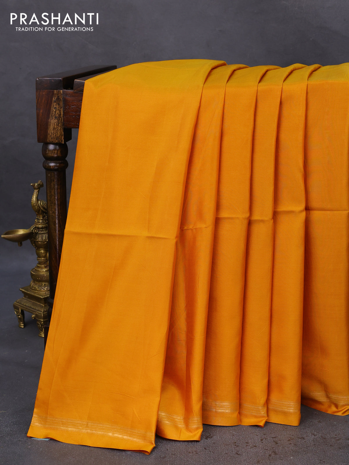 Pure soft silk saree mustard yellow and cs blue with plain body and hand painted kalamkari printed pallu