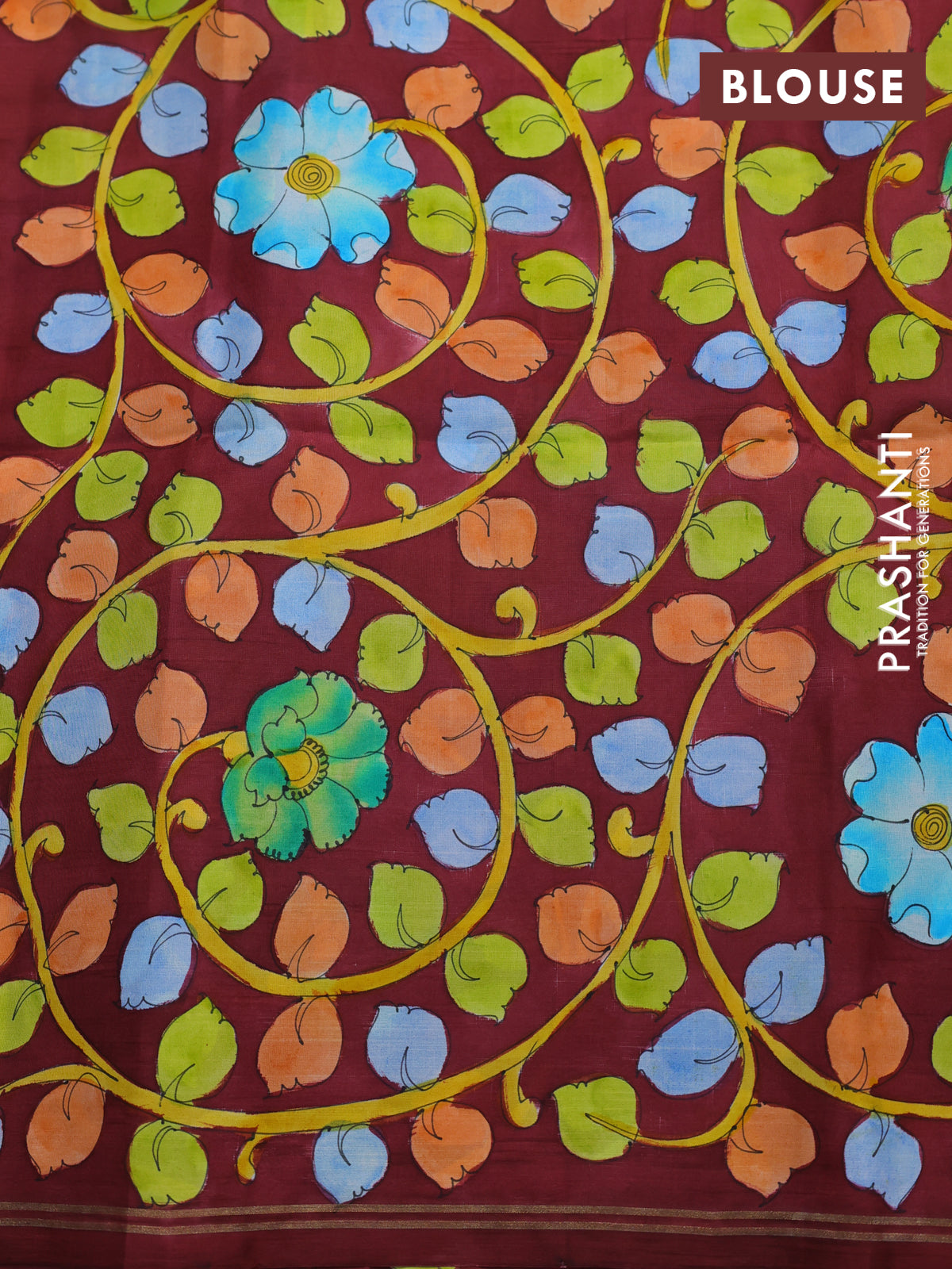 Pure soft silk saree mustard yellow and maroon with plain body and hand painted kalamkari pallu