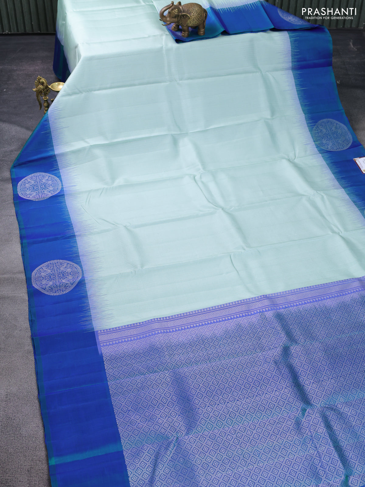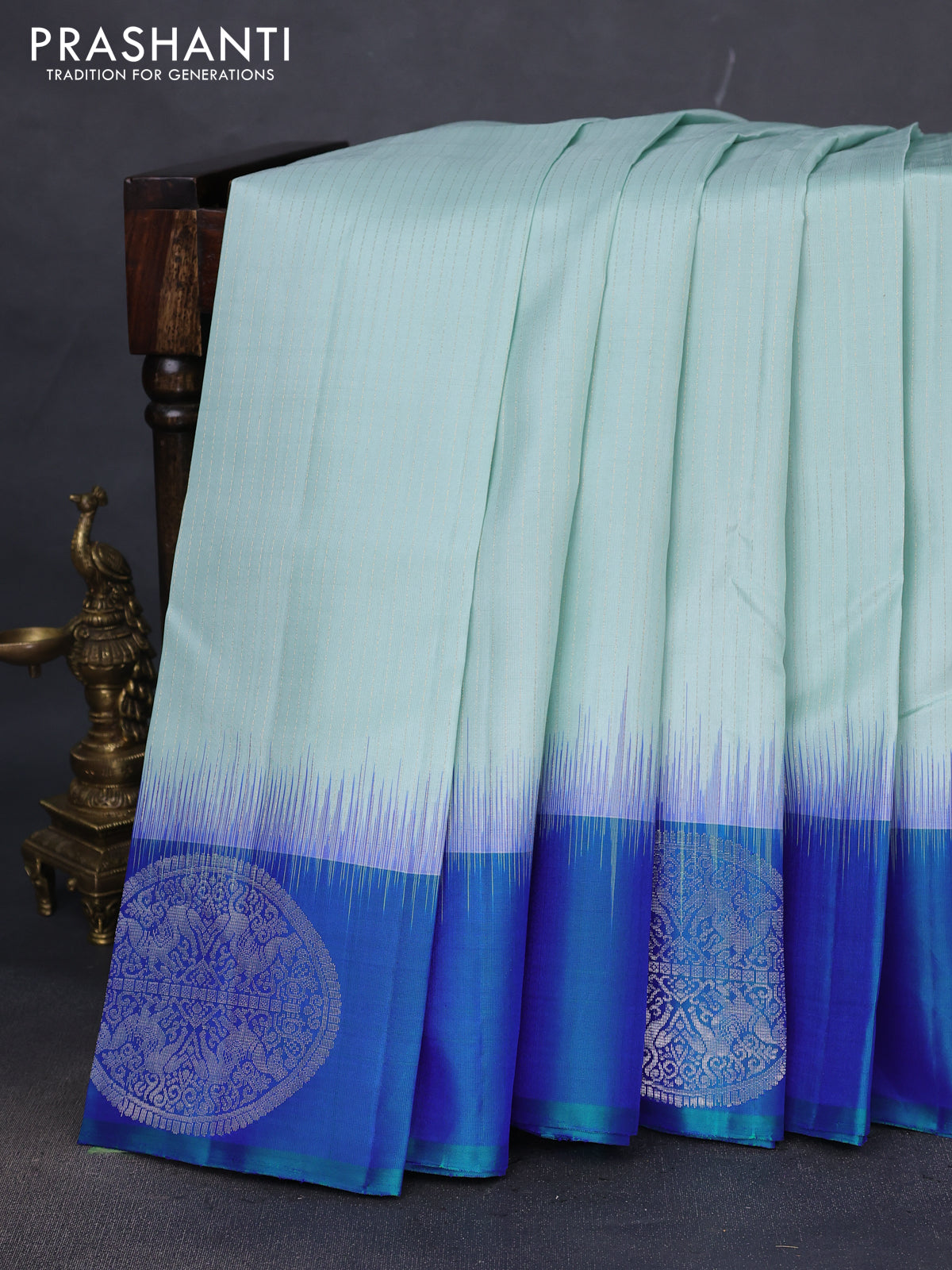 Pure soft silk saree pastel blue and dual shade of blue with allover zari weaves and zari woven butta border
