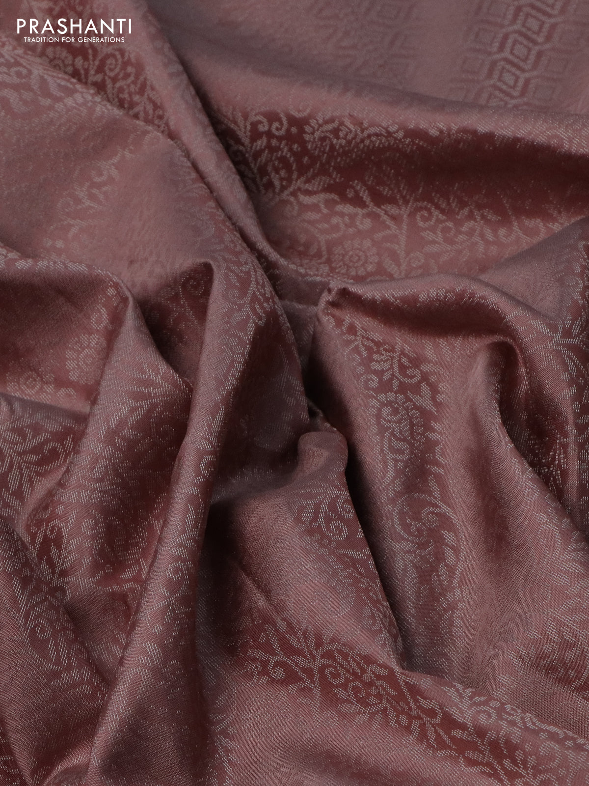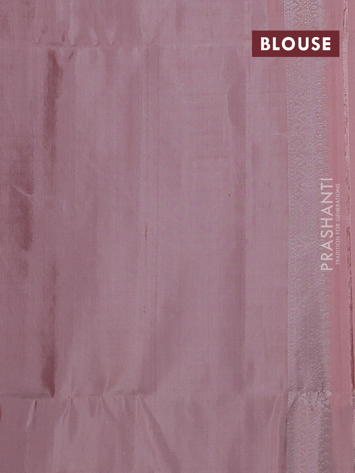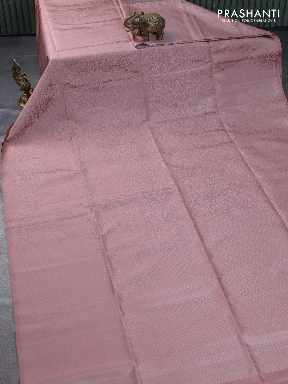 Pure soft silk saree pastel peach with allover silver zari woven brocade weaves in borderless style