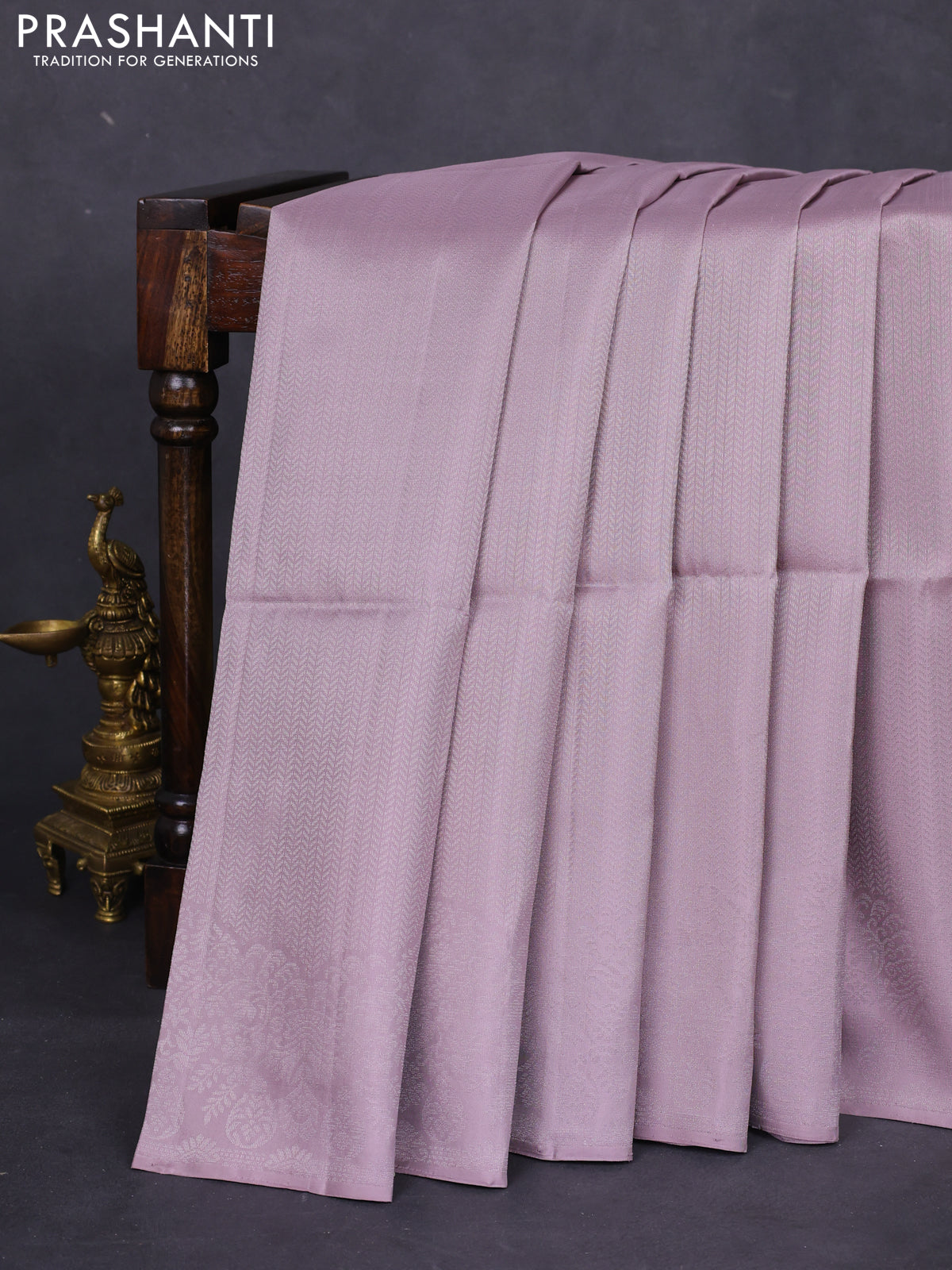 Pure soft silk saree pastel pink with allover silver zari woven brocade weaves and rich silver zari border