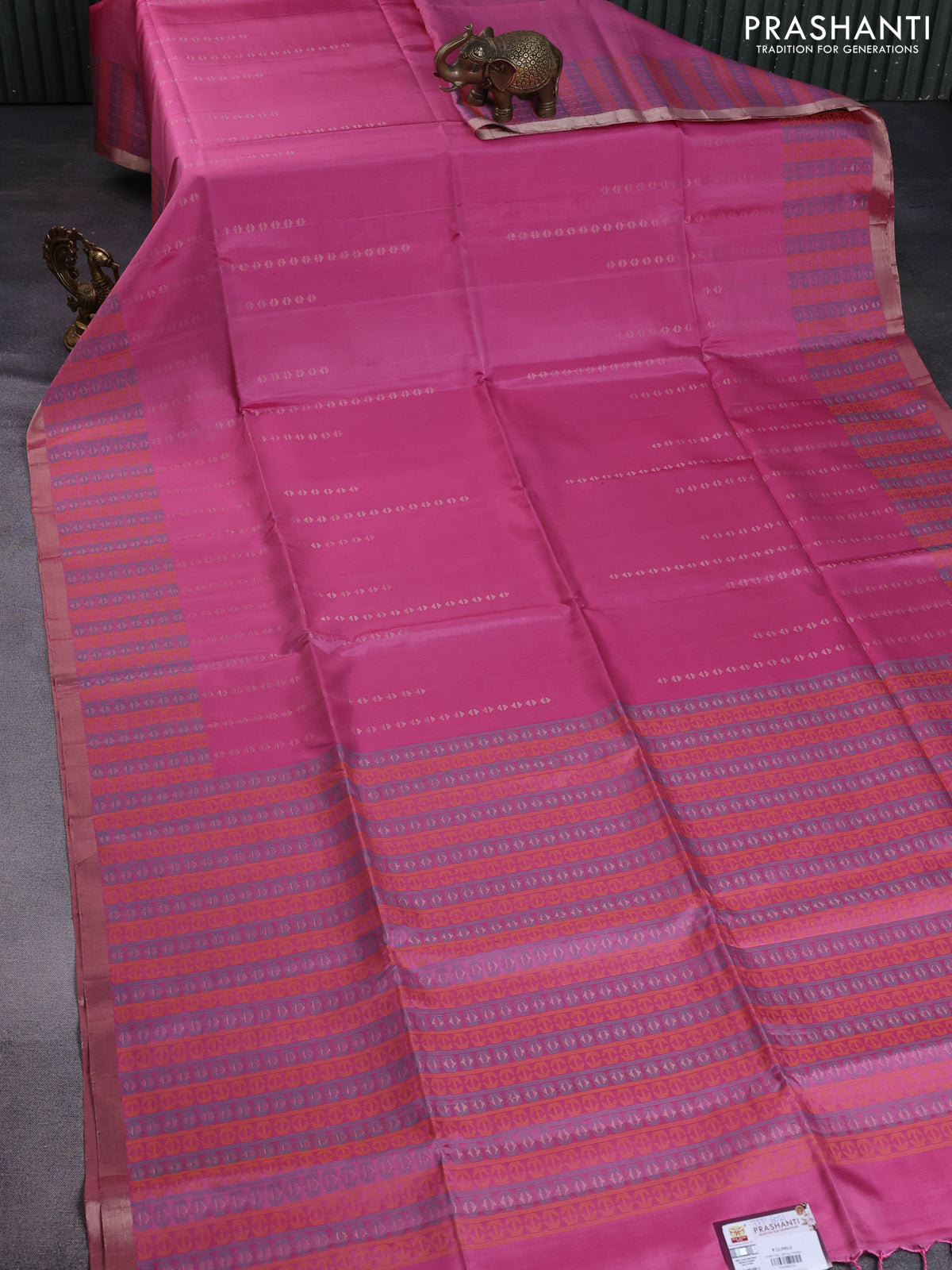 Pure soft silk saree pink with zari woven buttas and thread & zari woven border