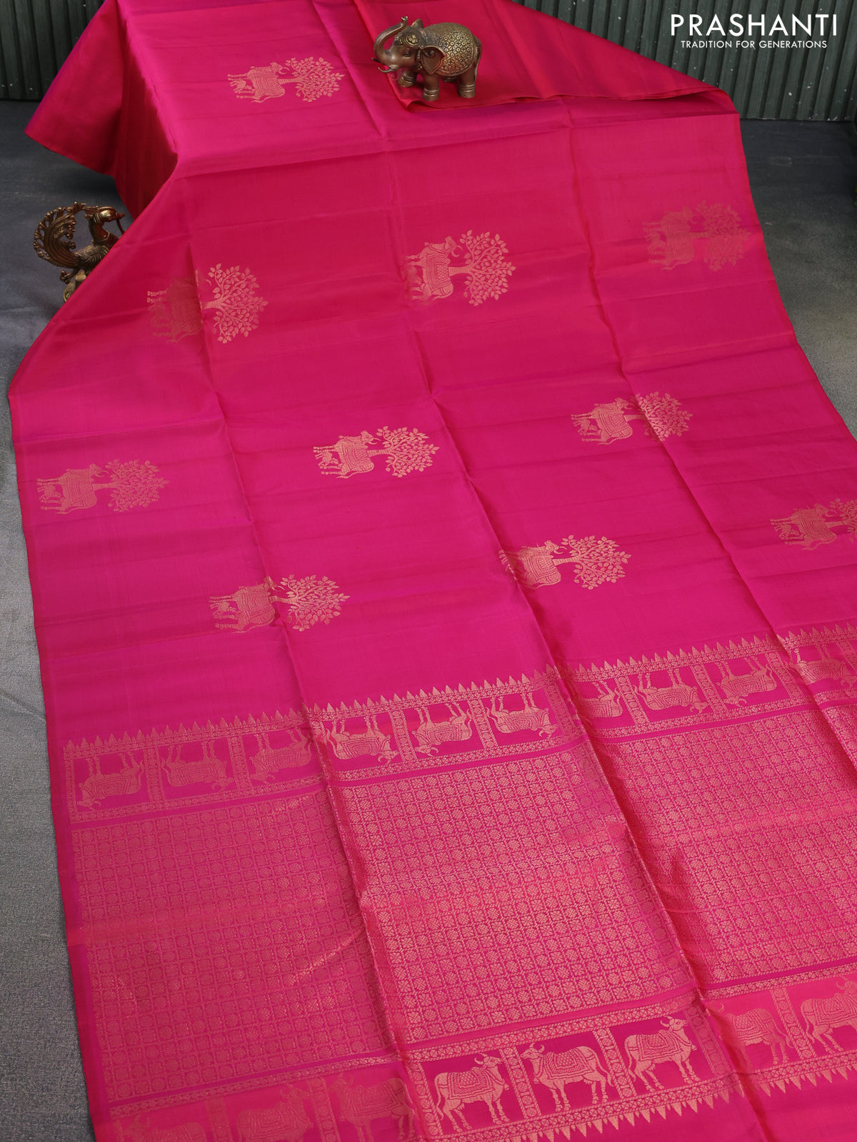 Pure soft silk saree pink with zari woven pichwai buttas in borderless style