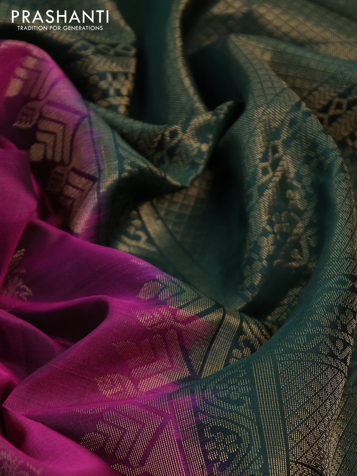 Pure soft silk saree purple and bottle green with zari woven buttas and zari woven border
