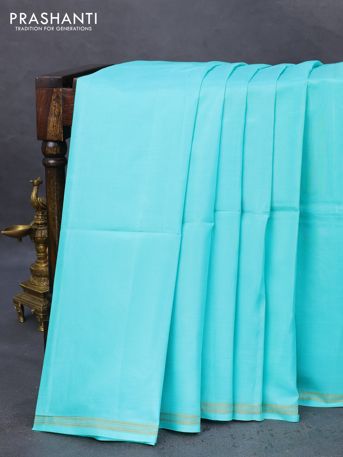 Pure soft silk saree teal blue and light blue with plain body and hand painted kalamkari printed pallu