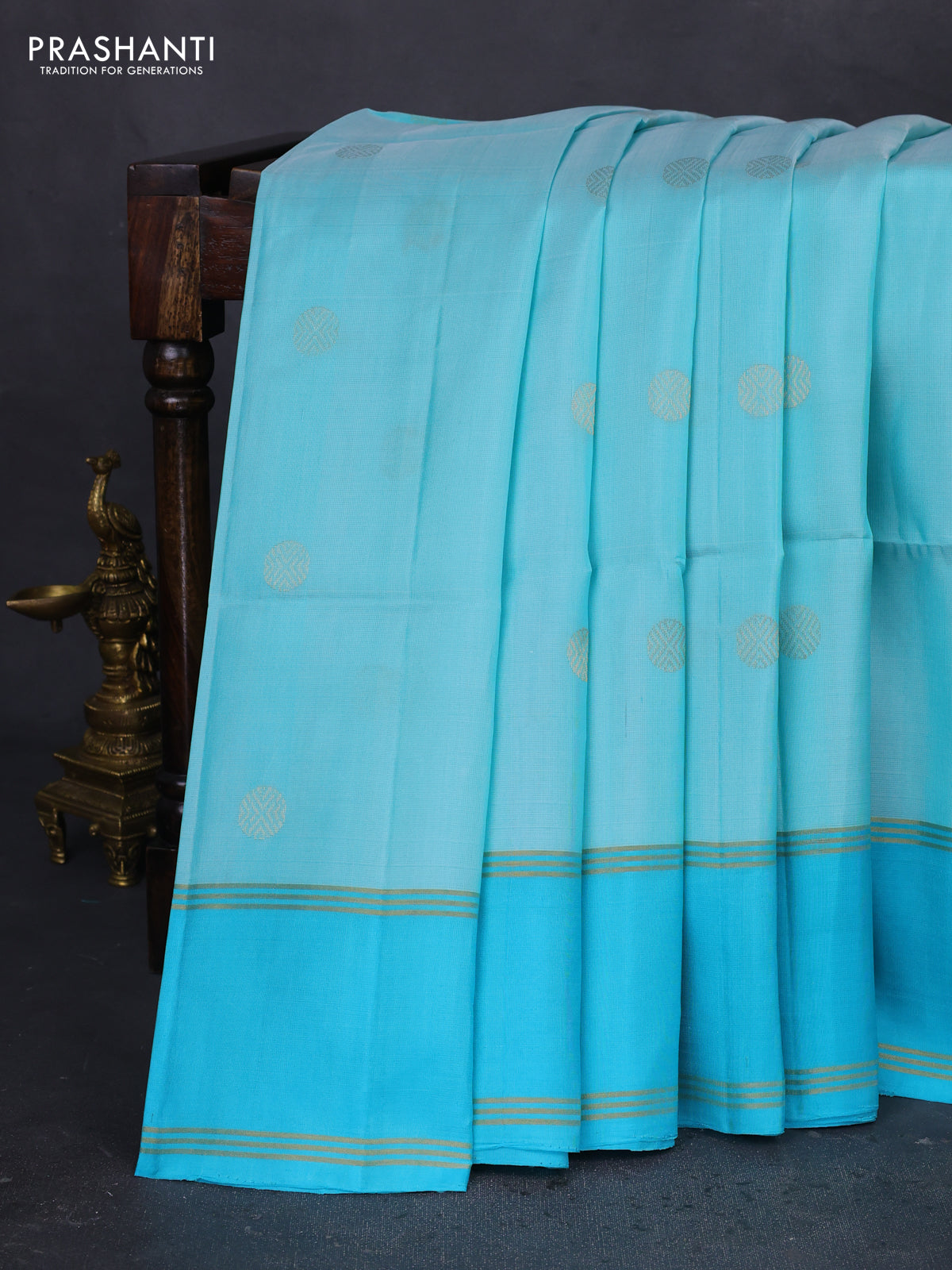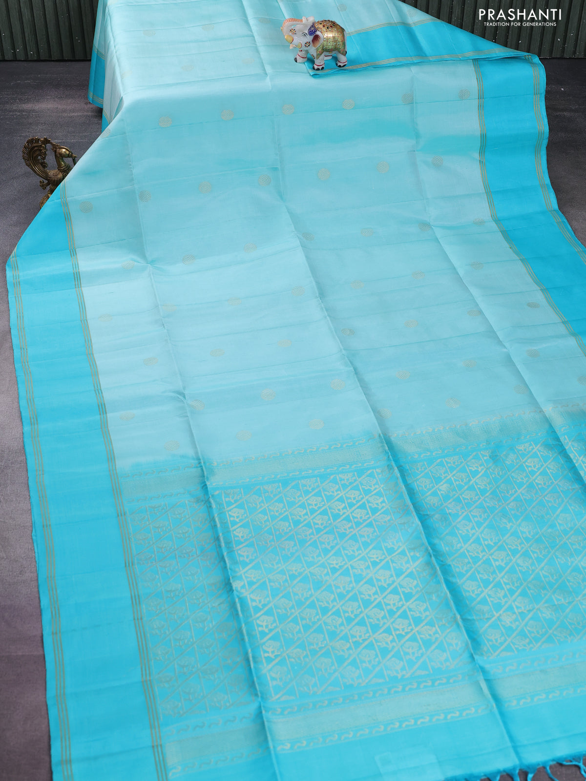 Pure soft silk saree teal blue with zari woven buttas and rettapet zari woven border