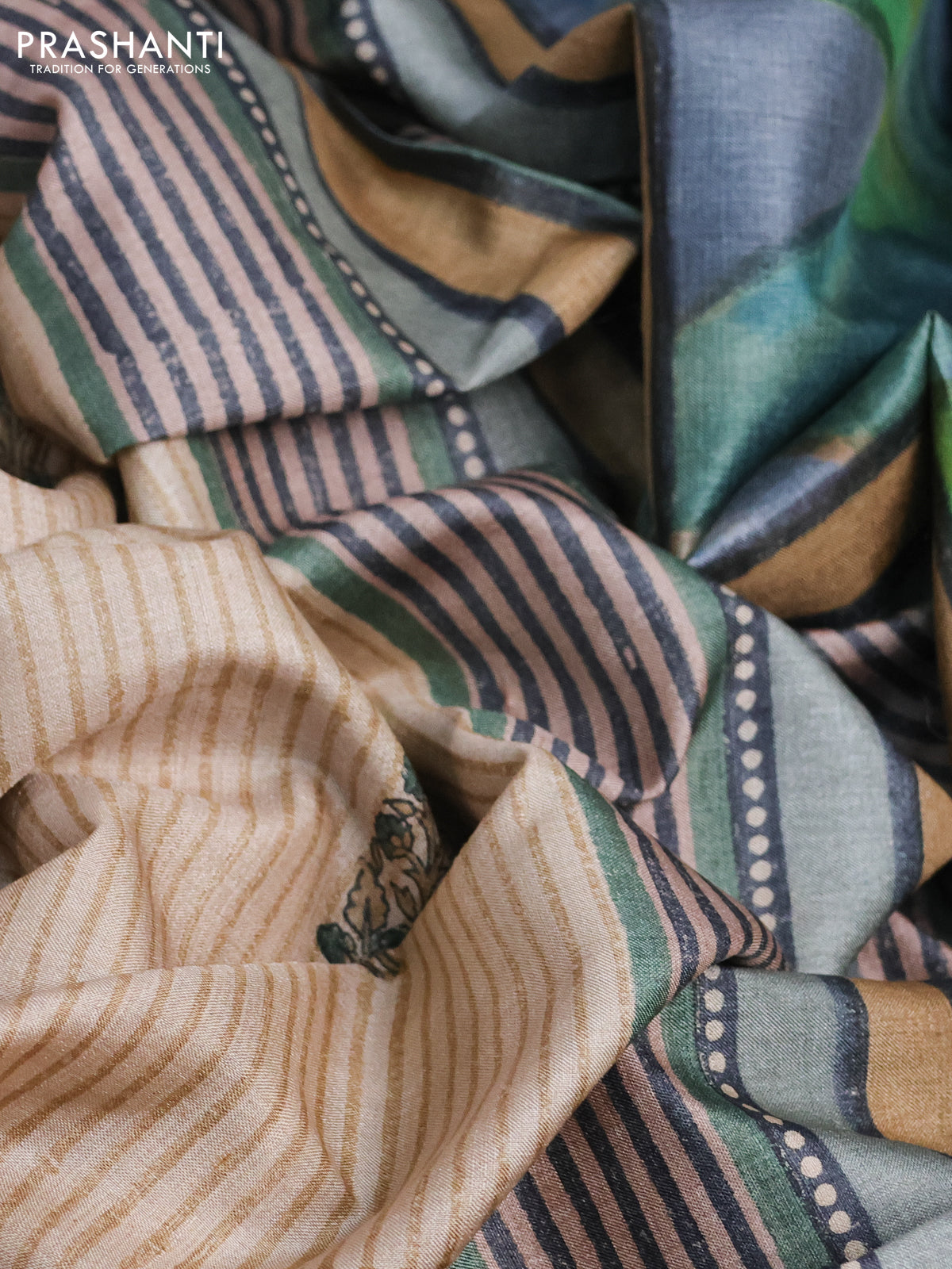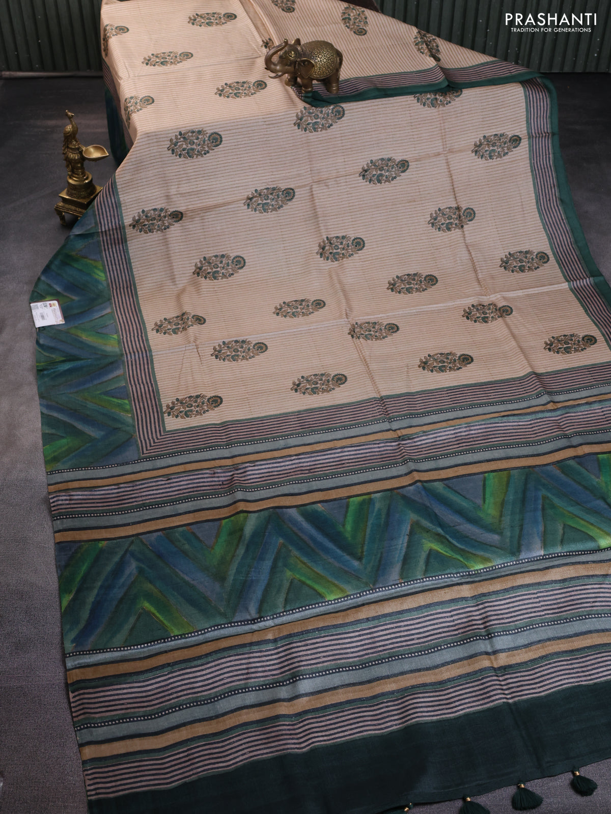 Pure tussar silk saree beige and multi colour with floral butta prints and printed border