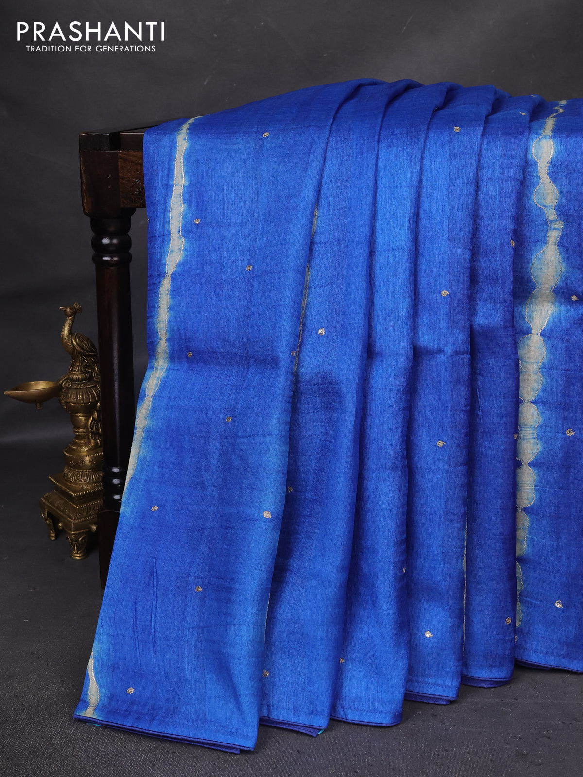 Pure tussar silk saree blue and cream with tie & dye prints and pita work pallu