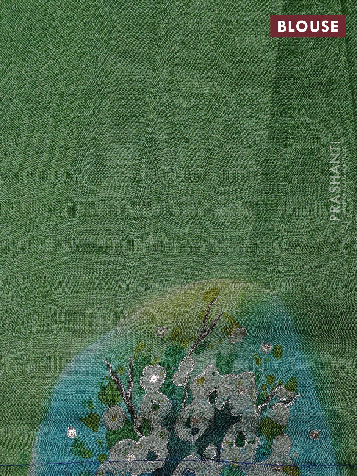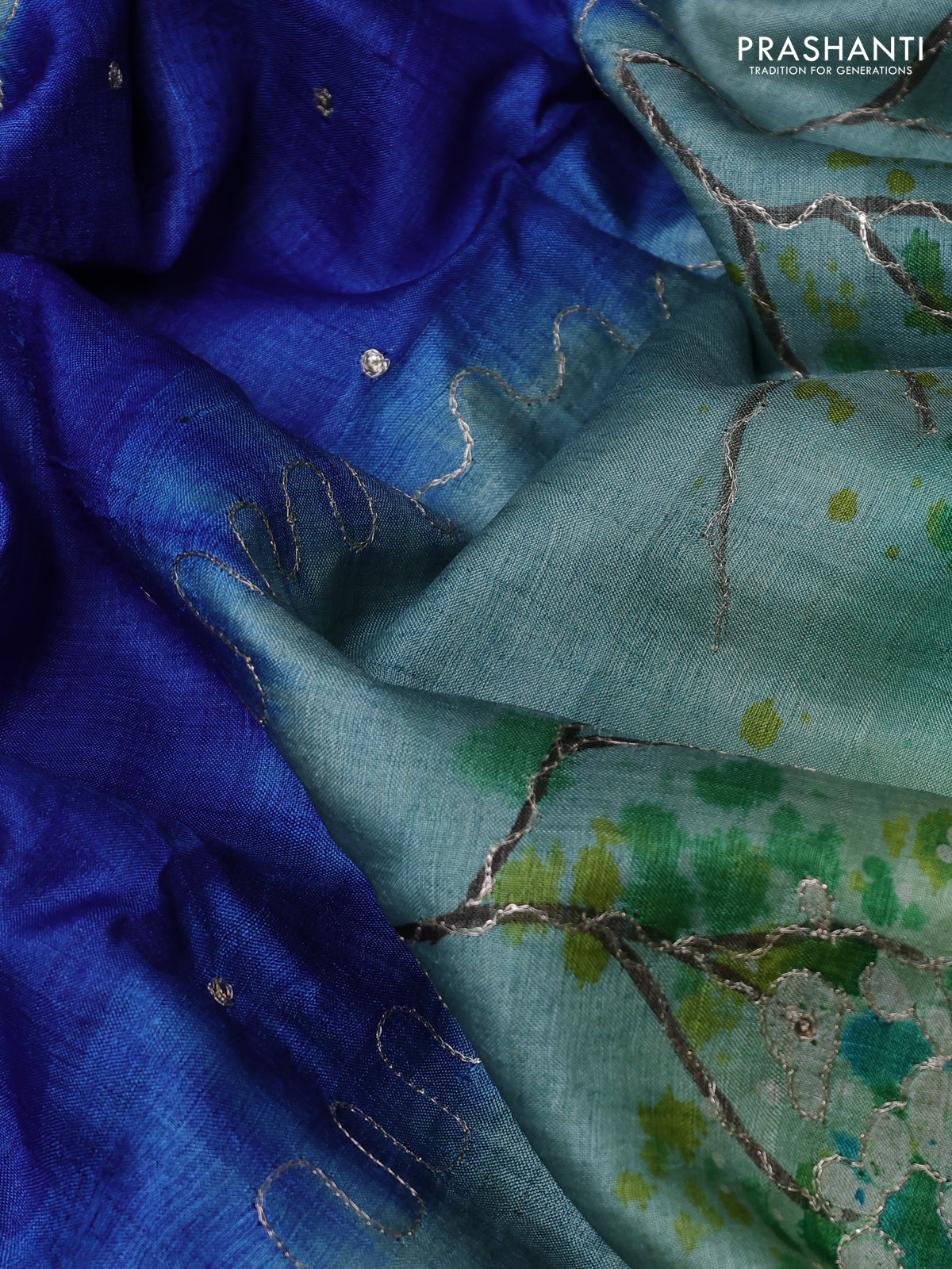 Pure tussar silk saree blue and light green with tie & dye prints and pita work pallu