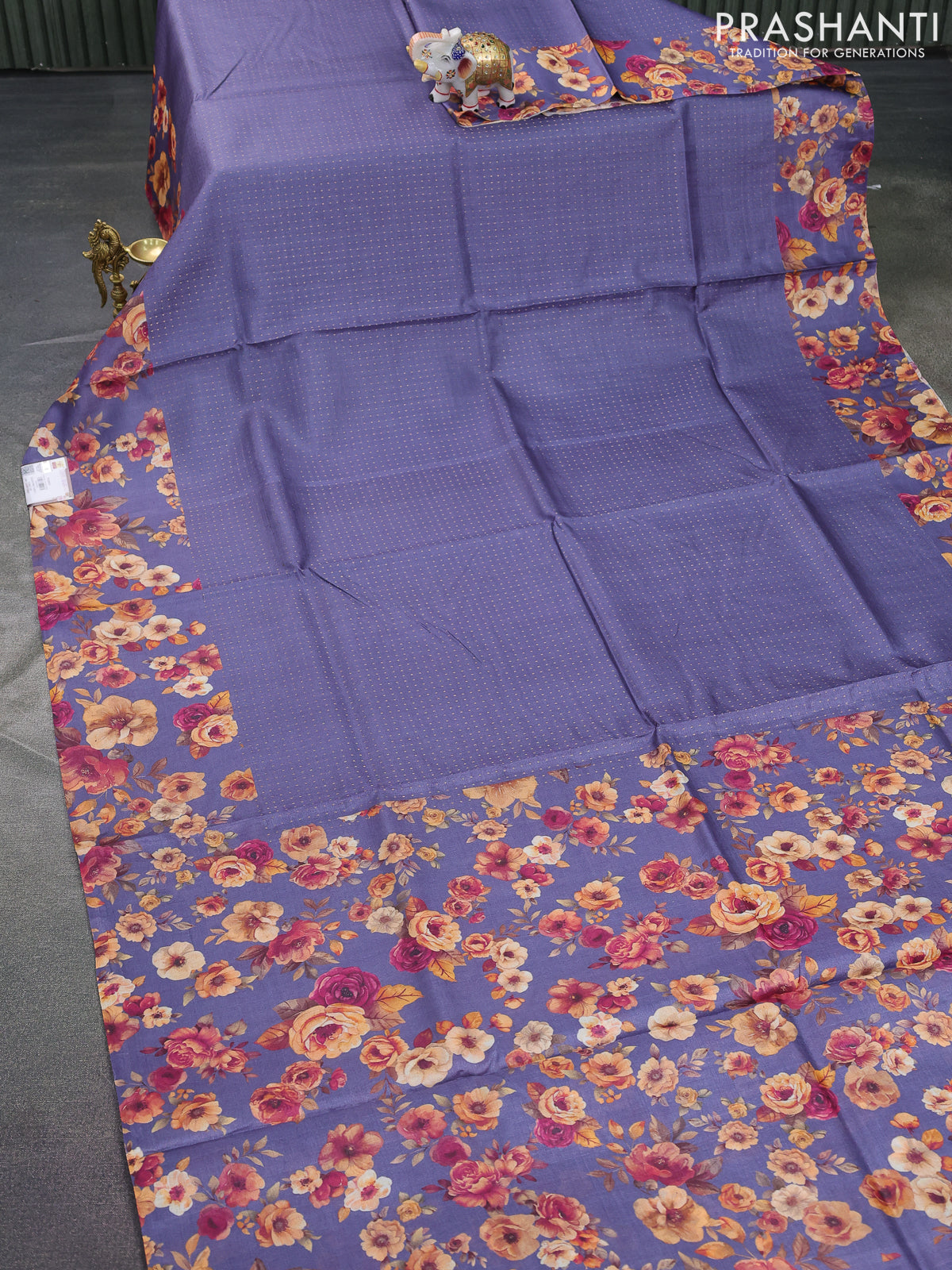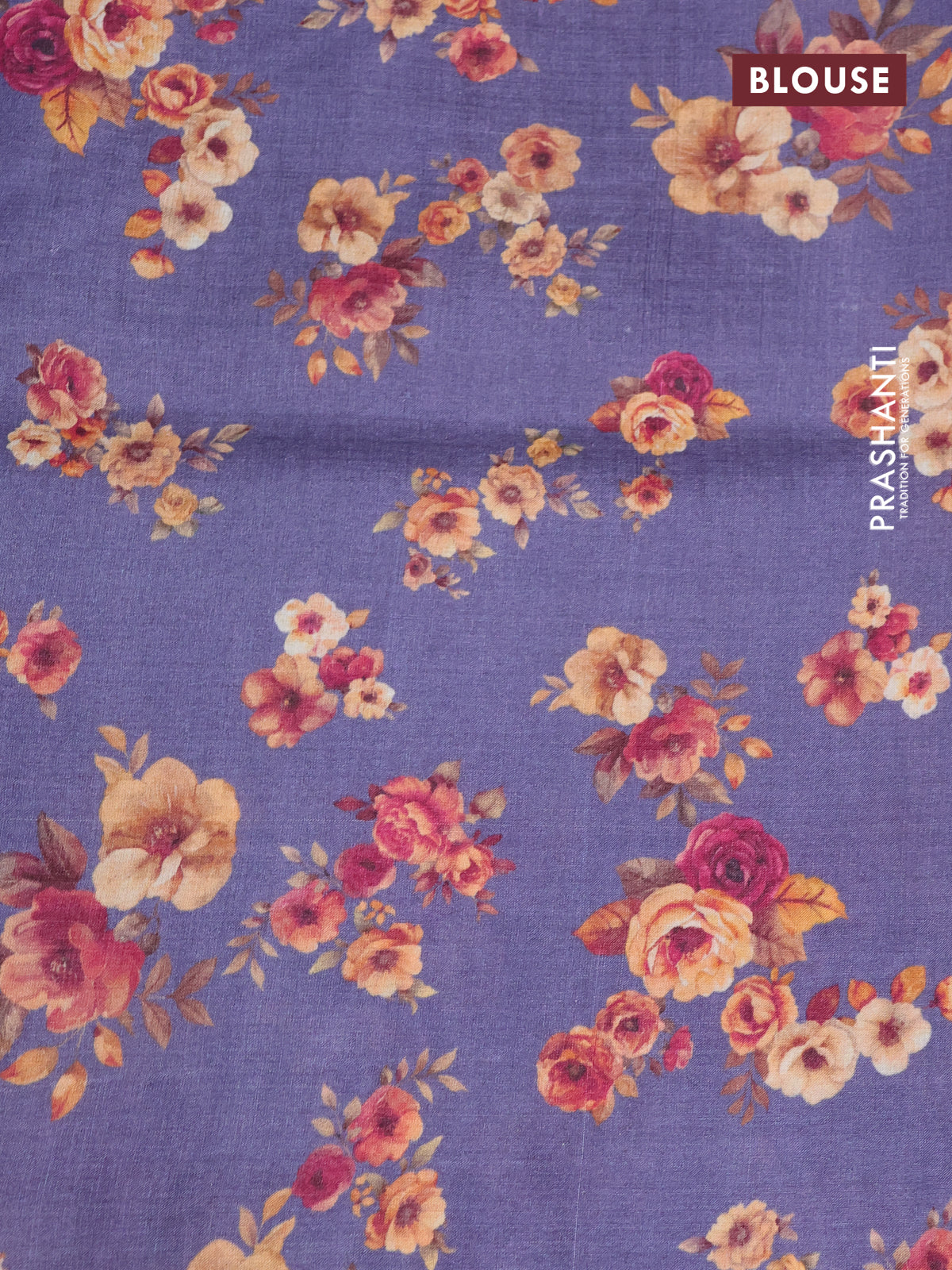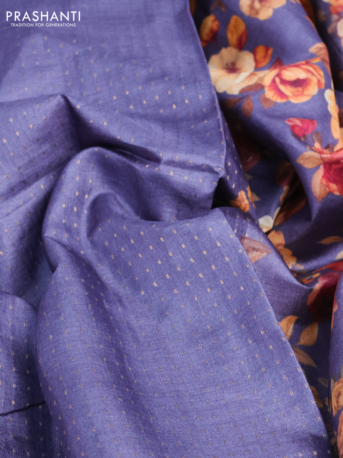 Pure tussar silk saree blue shade with allover zari weaves and floral digital printed border