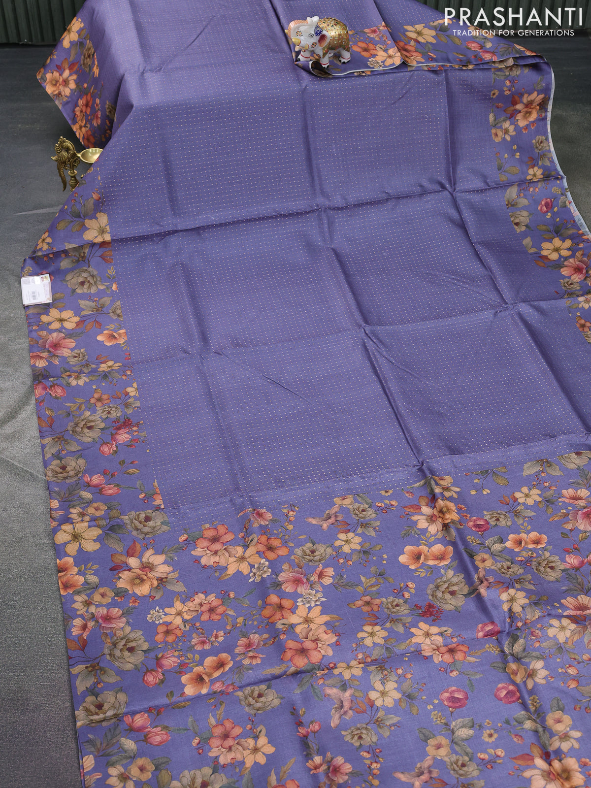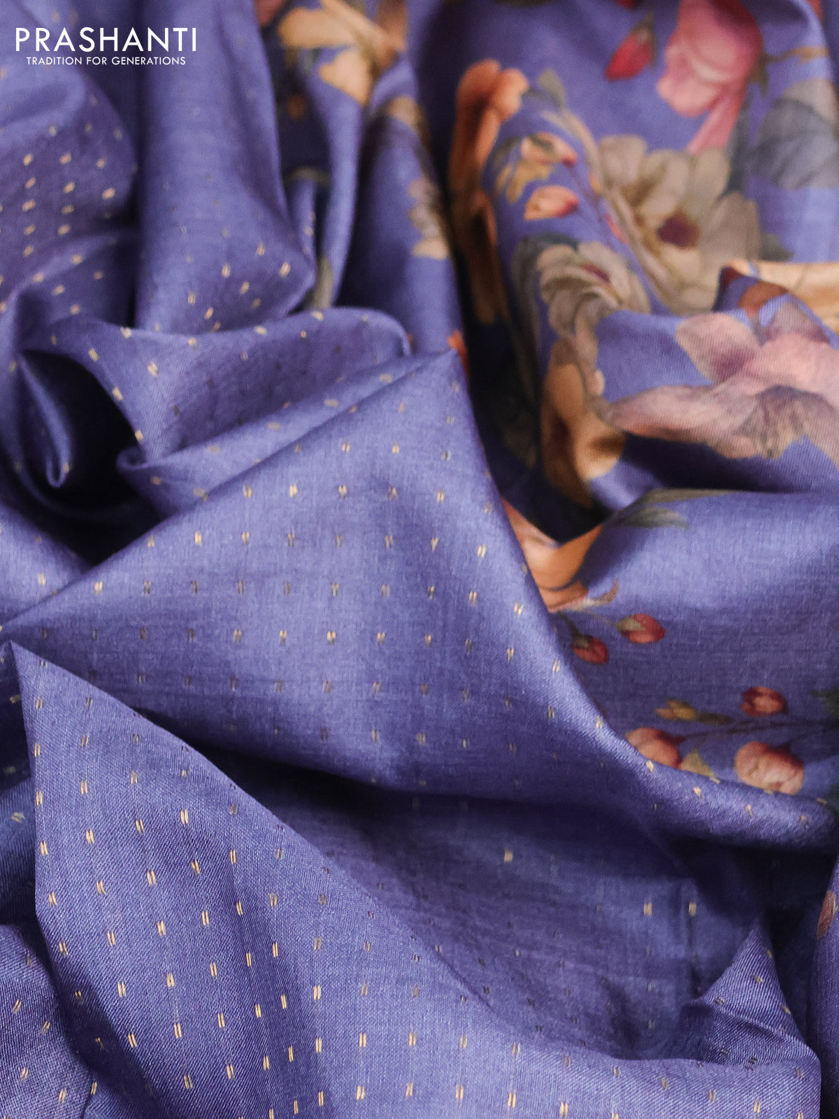 Pure tussar silk saree blue shade with allover zari weaves and floral digital printed border