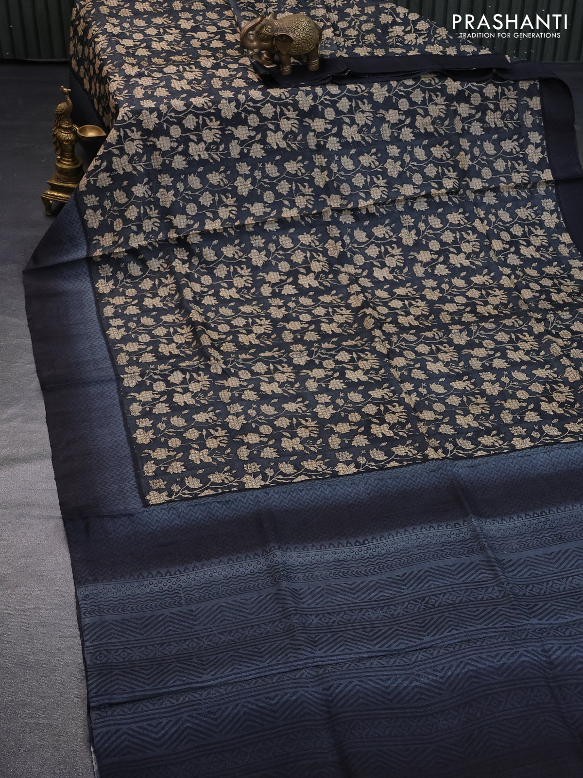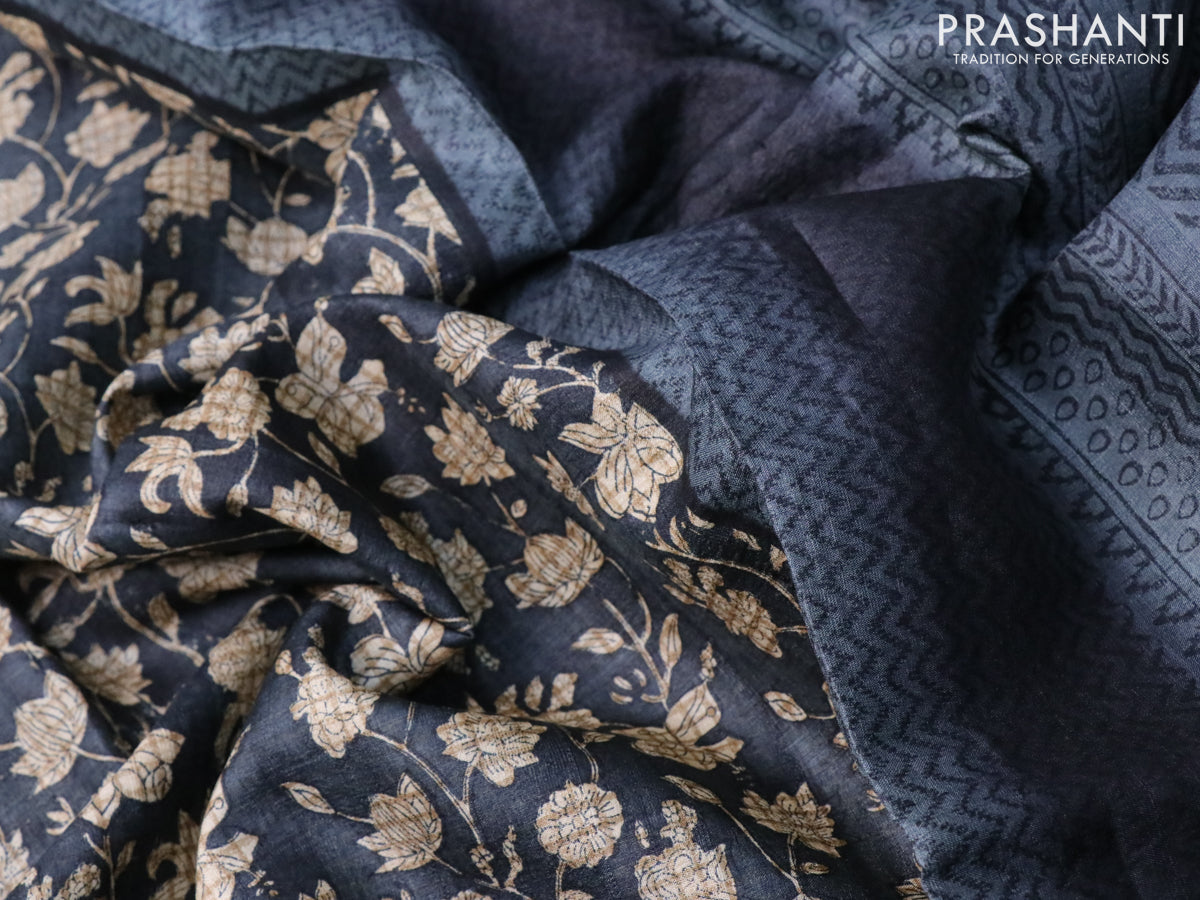 Pure tussar silk saree elephant grey with allover floral prints and printed border