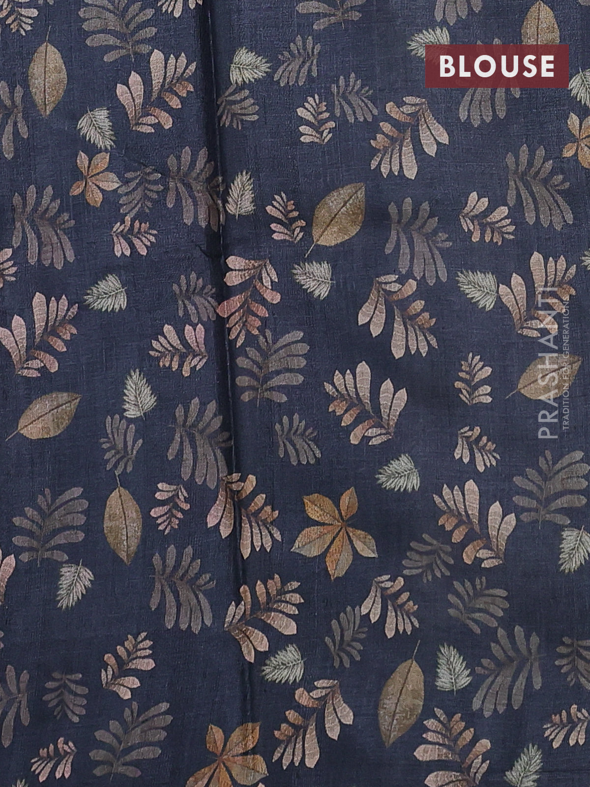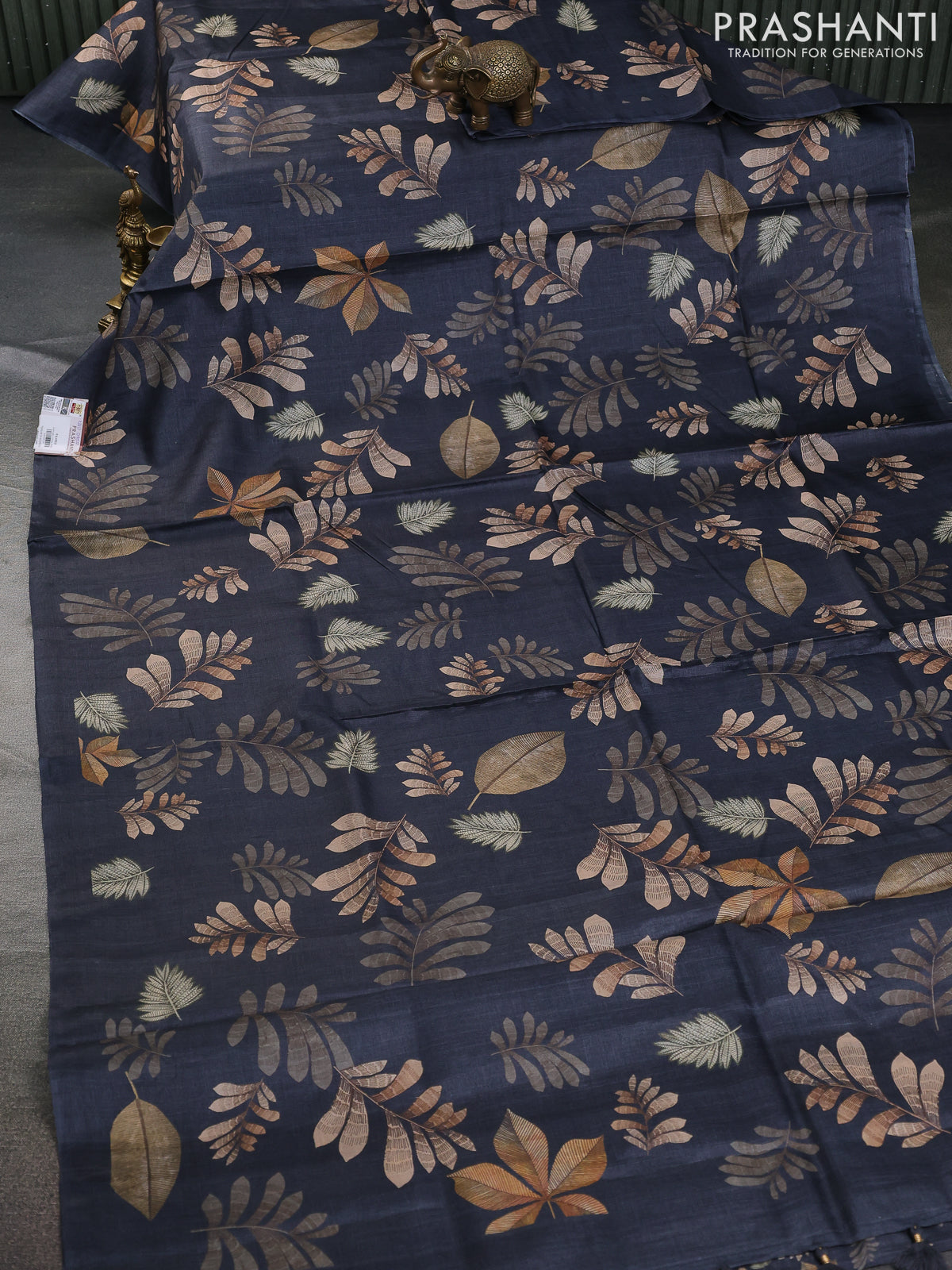 Pure tussar silk saree elephant grey with leaf digital prints in borderless style