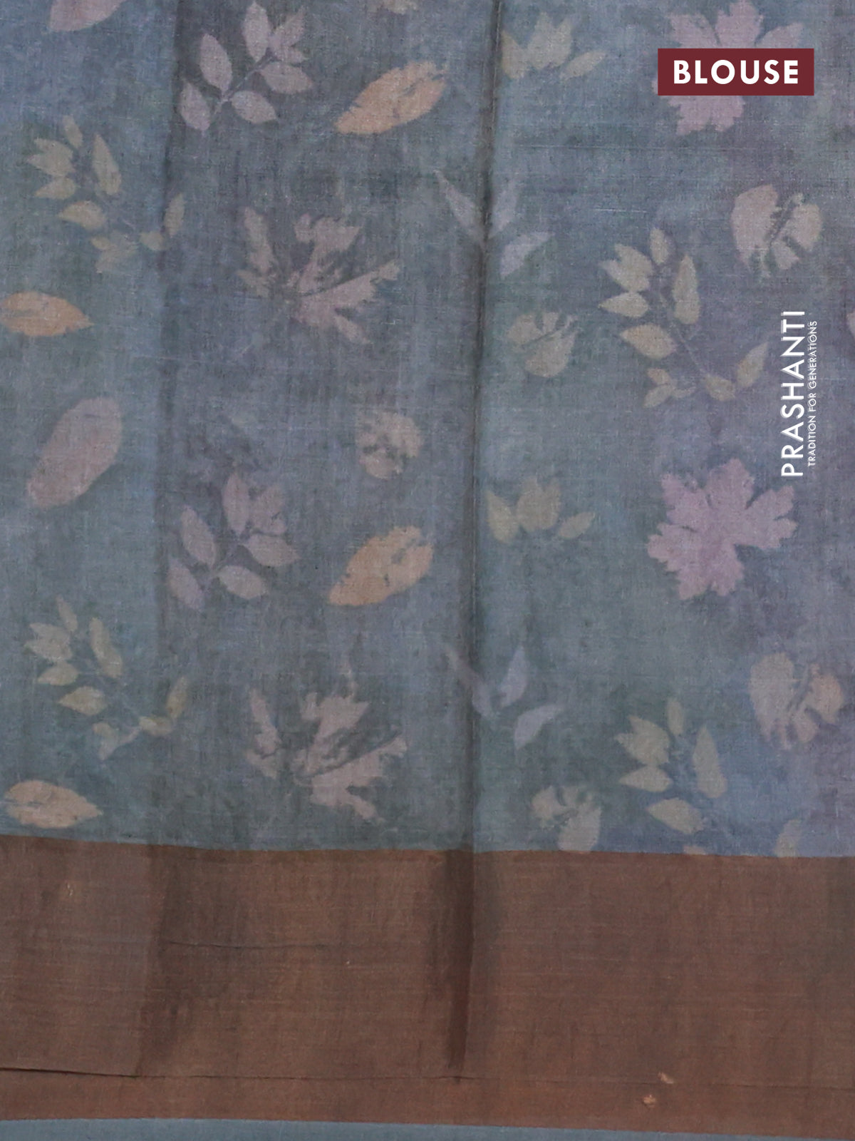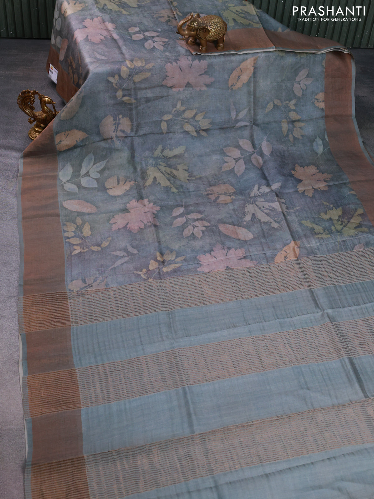 Pure tussar silk saree grey with allover floral digital prints and zari woven border