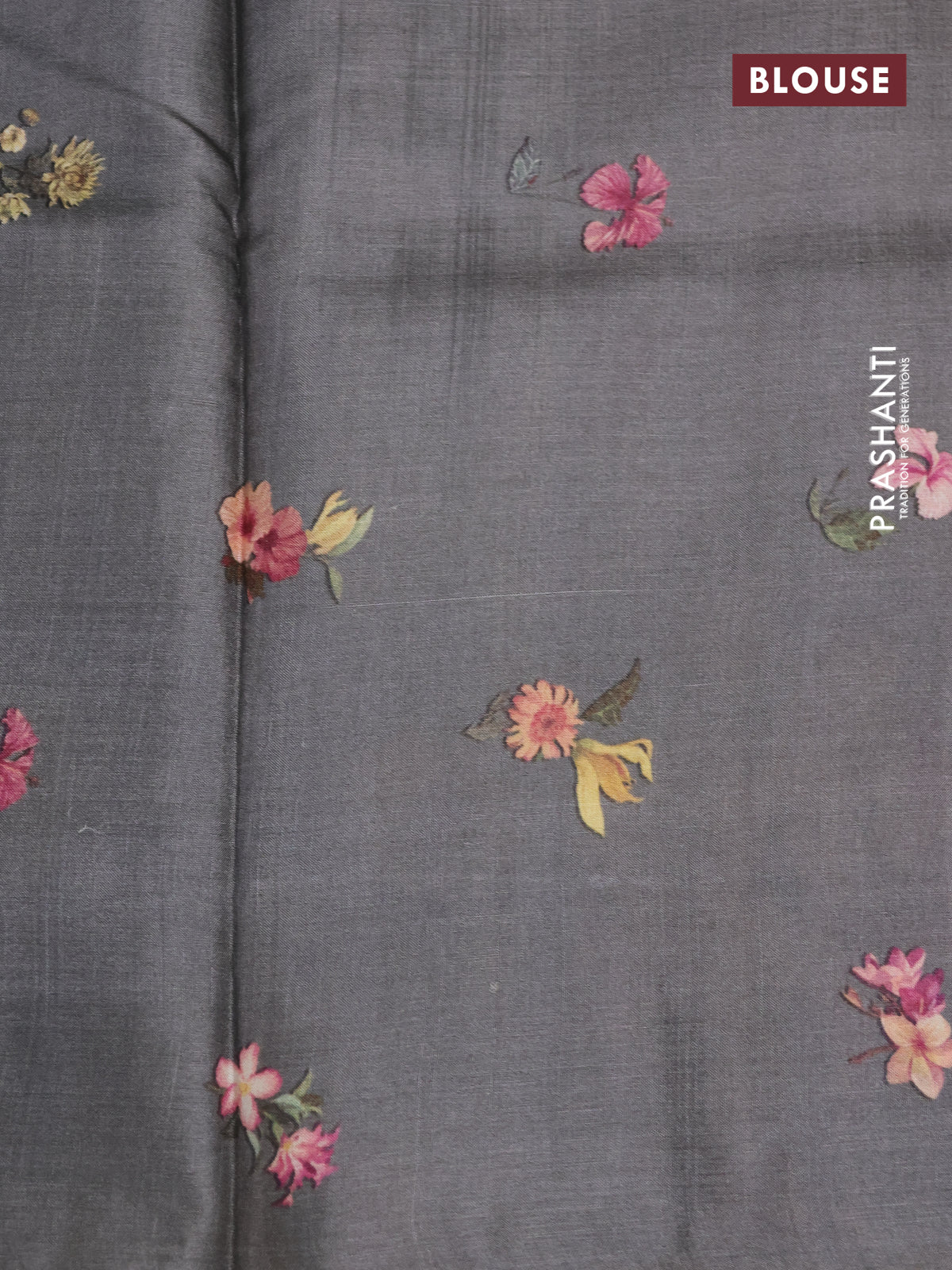 Pure tussar silk saree grey with allover zari weaves and floral digital printed border