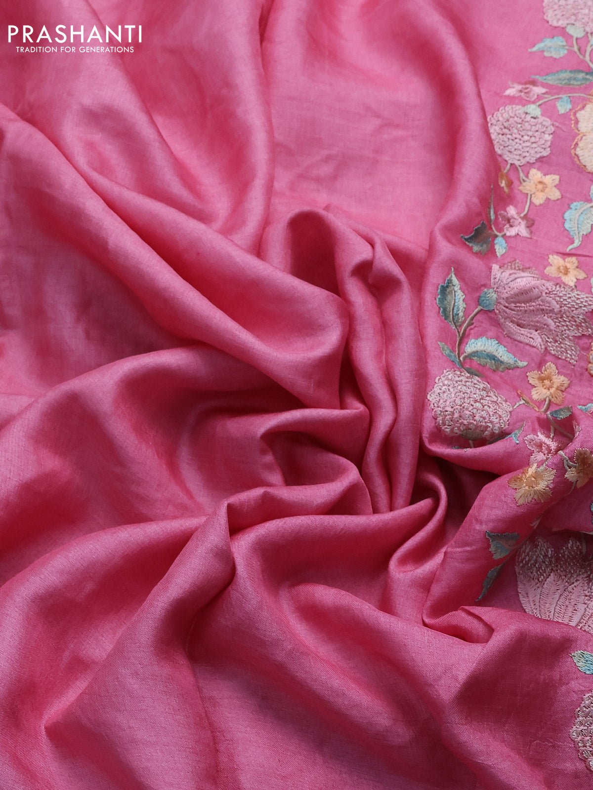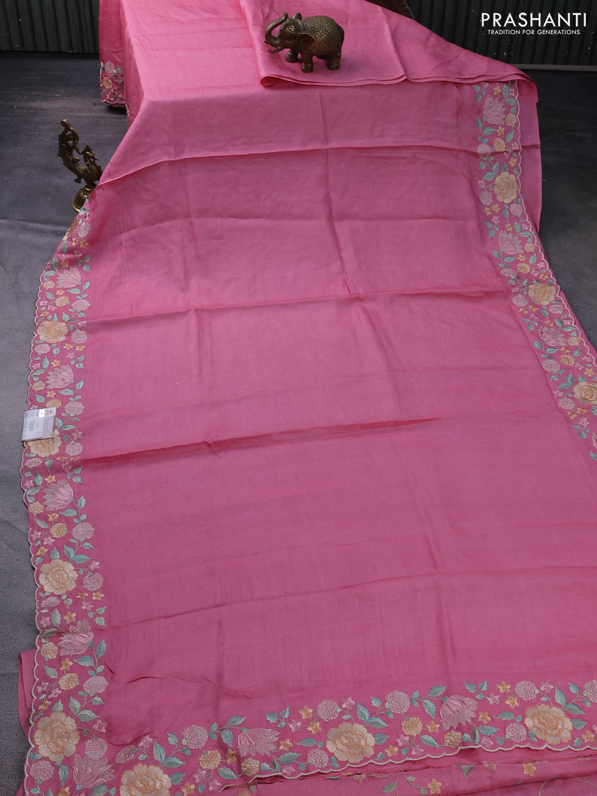 Pure tussar silk saree light pink with plain body and floral design embroidery work border