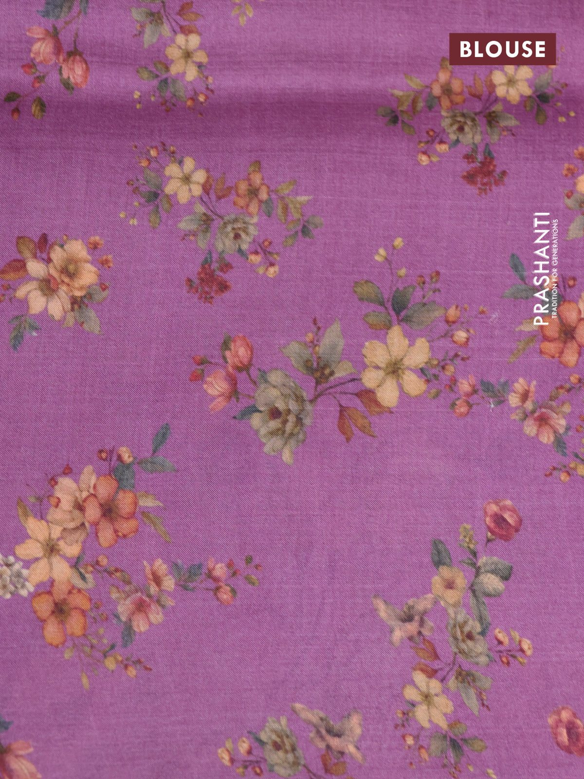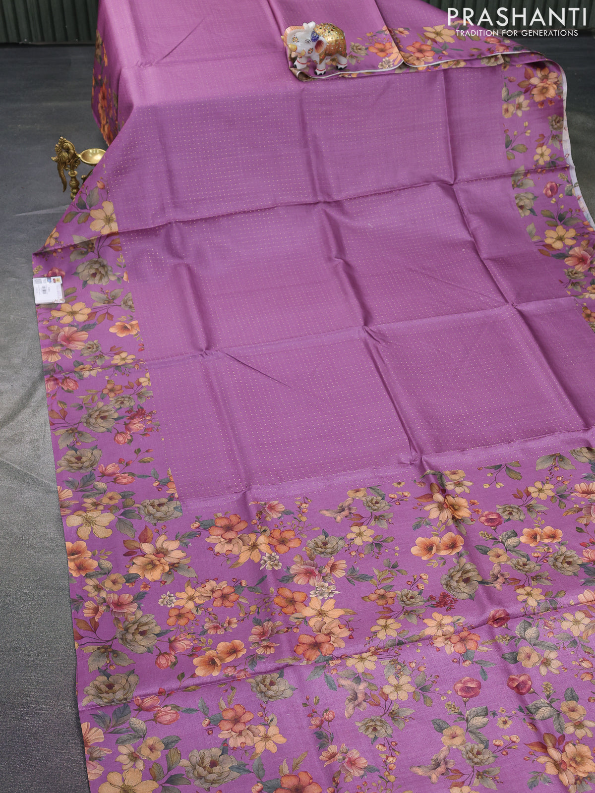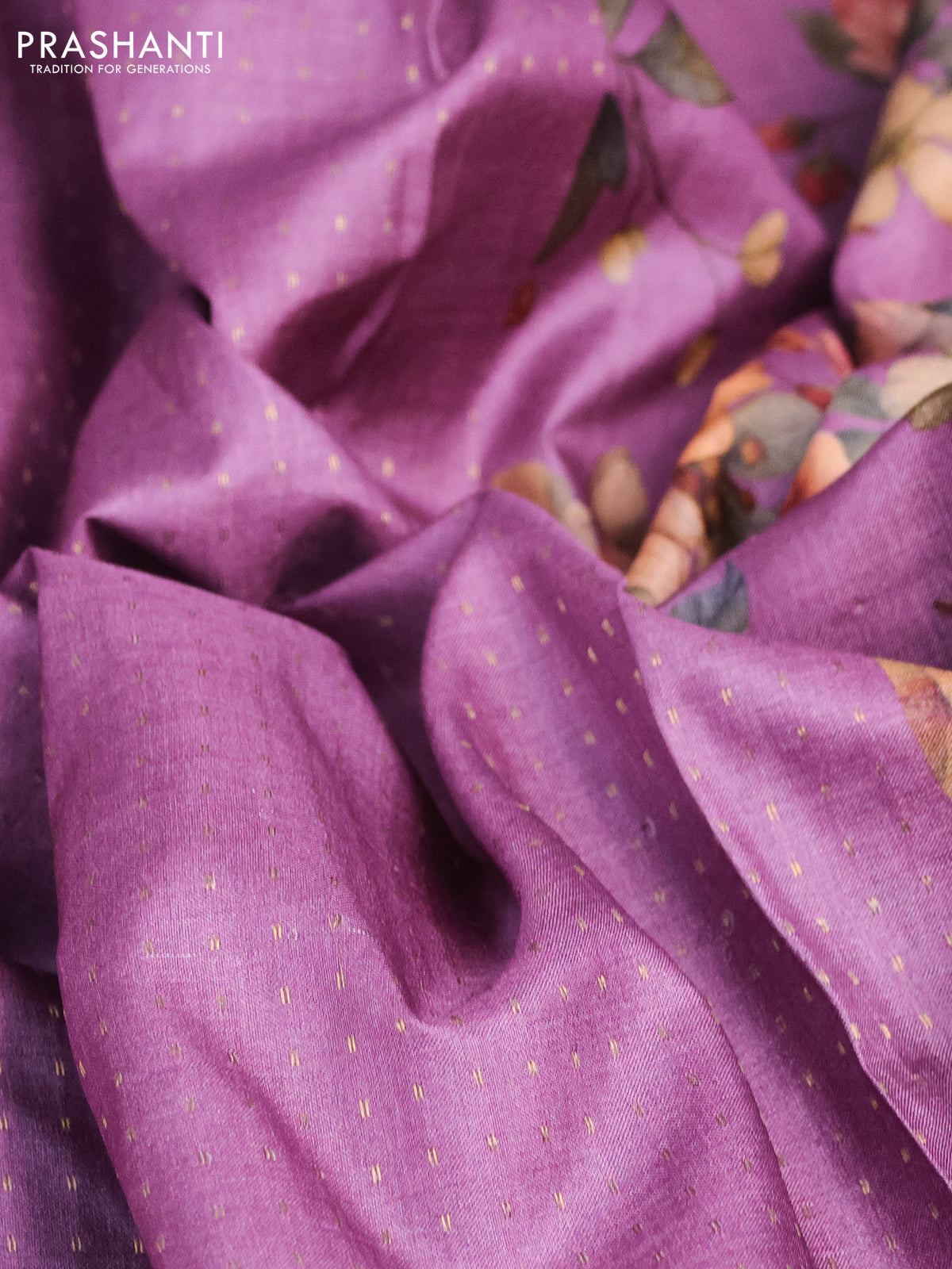 Pure tussar silk saree mauve pink with allover zari weaves and floral digital printed border
