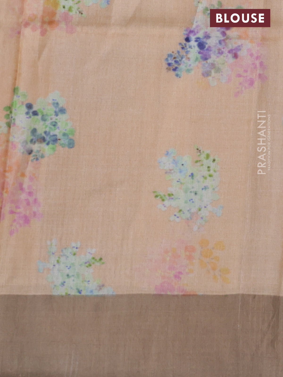 Pure tussar silk saree pale orange with floral digital prints and zari woven border