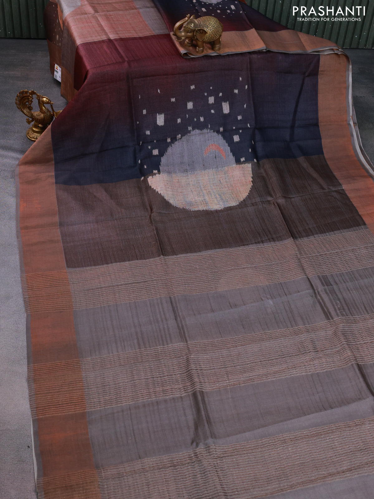 Pure tussar silk saree pastel grey with allover digital prints and zari woven border