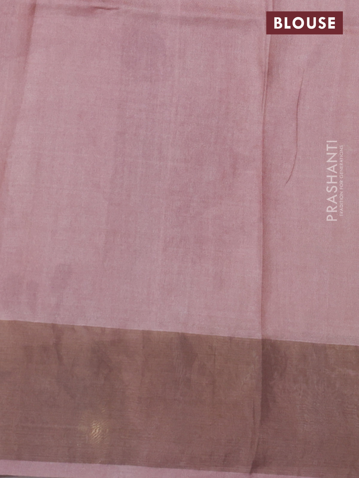 Pure tussar silk saree pastel pink with floral digital prints and zari woven border
