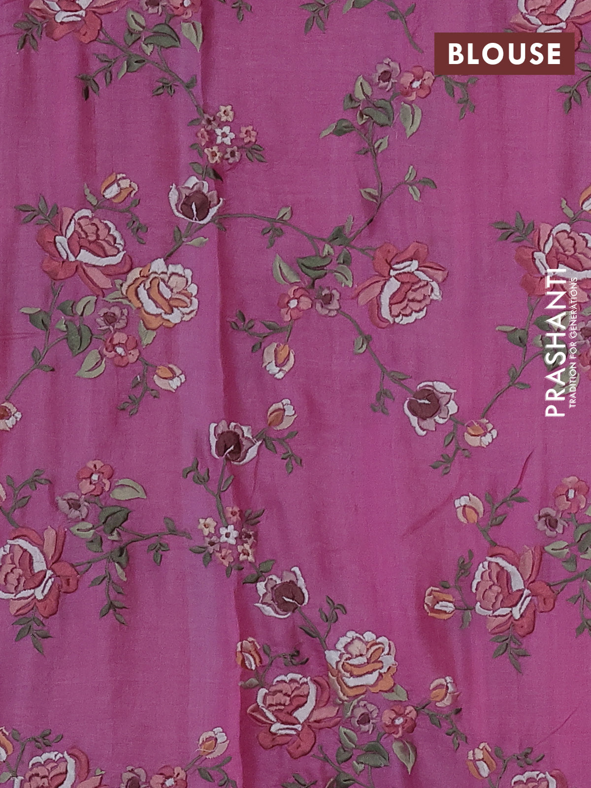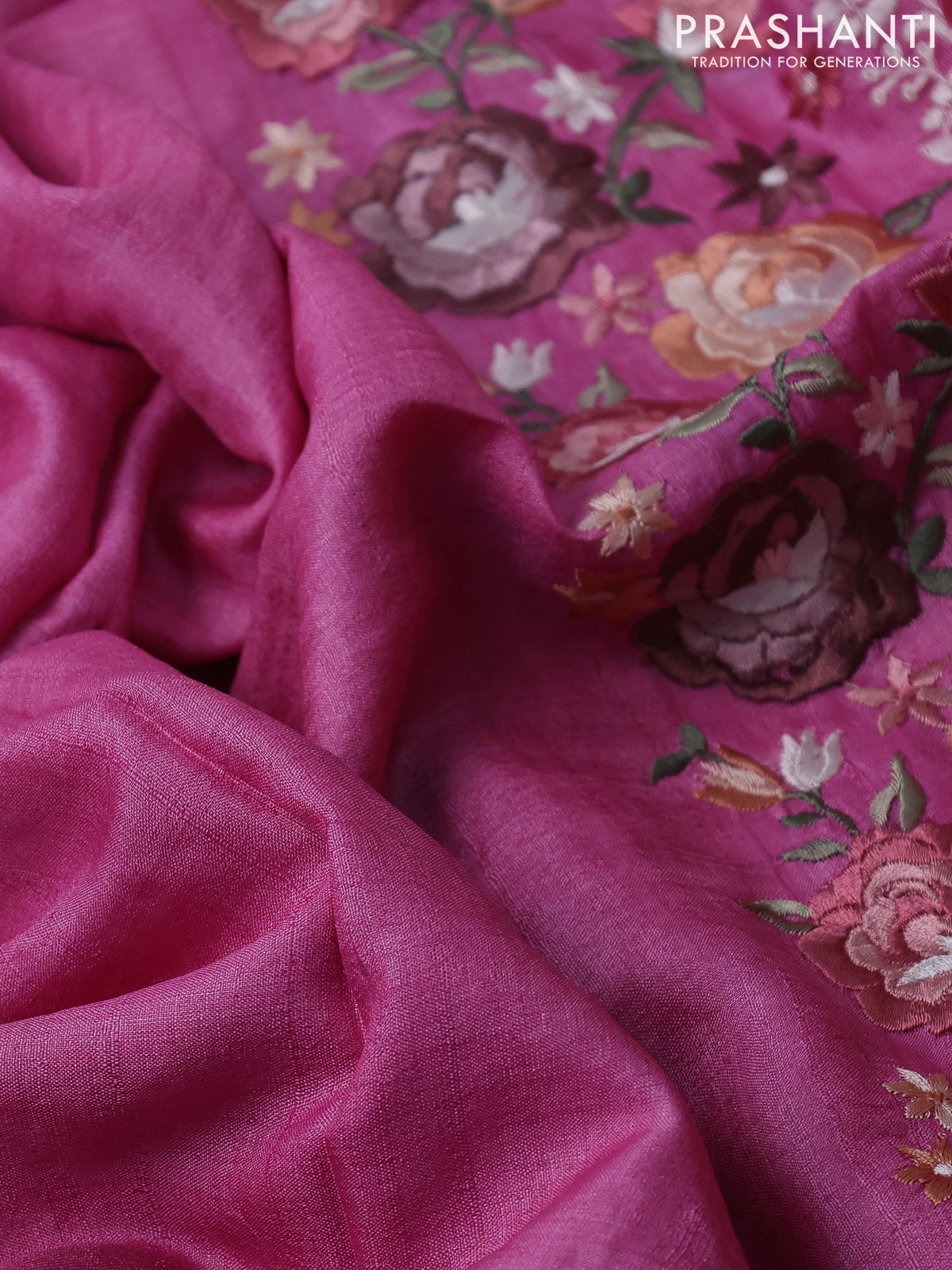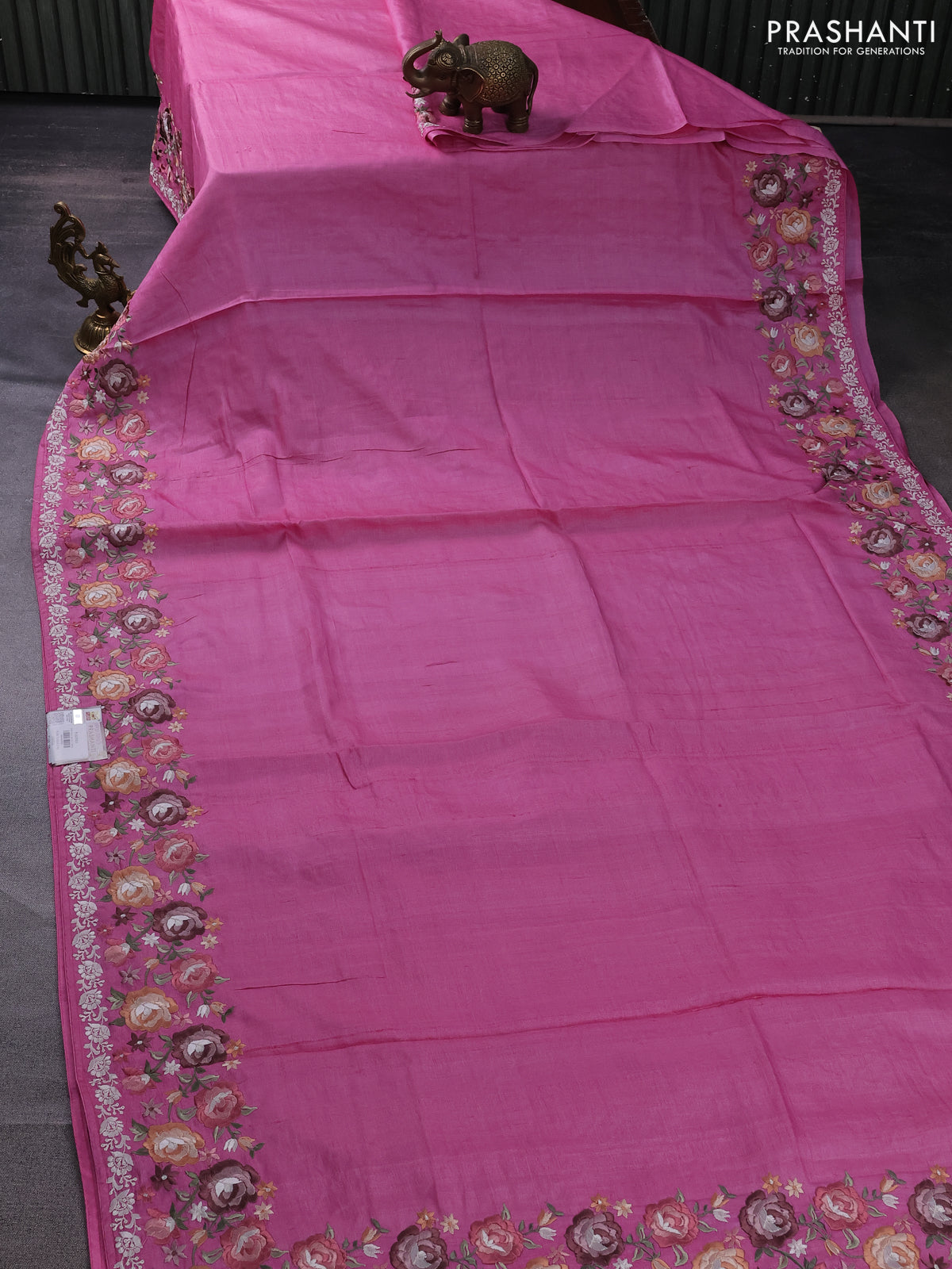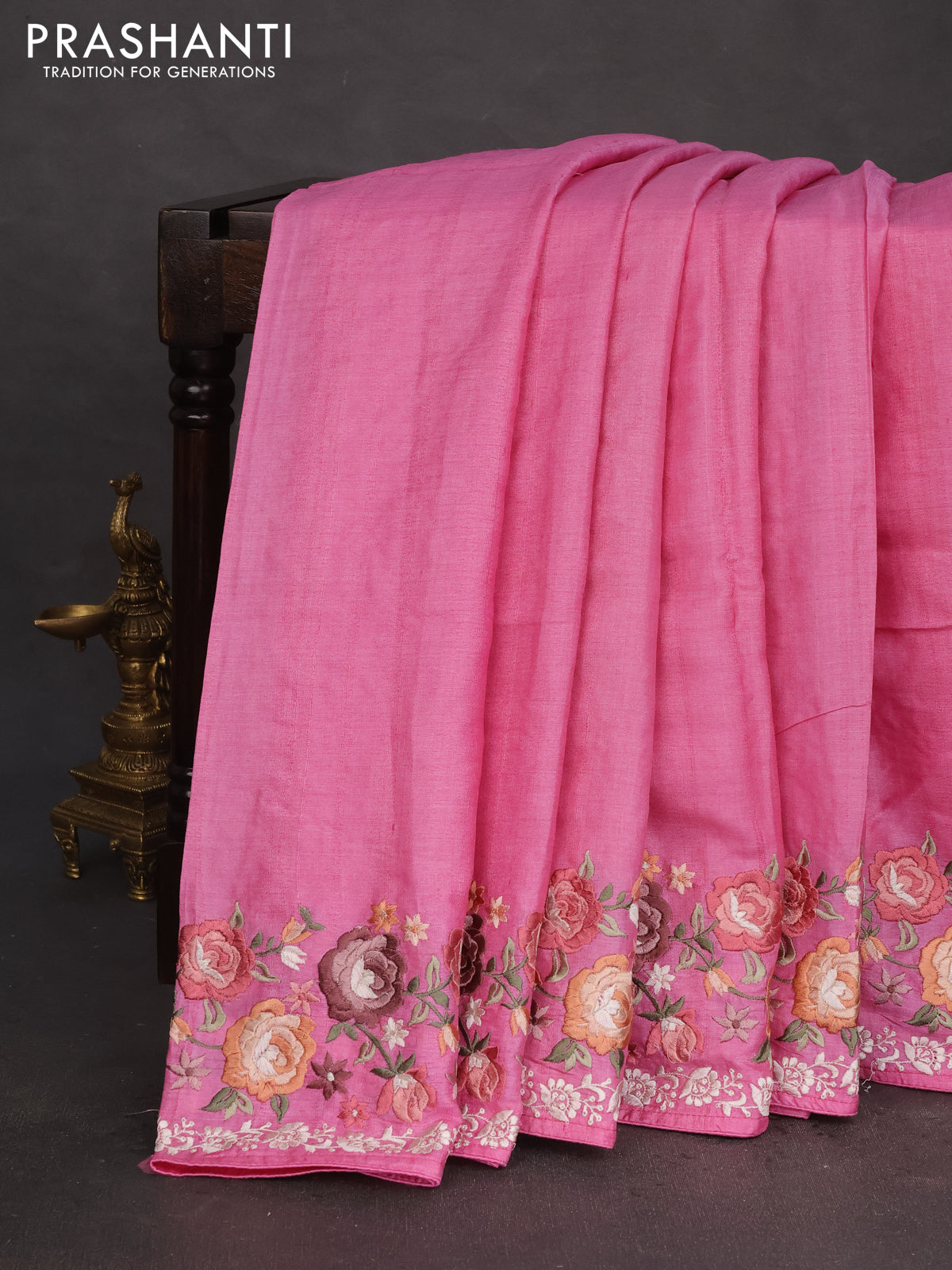 Pure tussar silk saree pink with plain body and floral design embroidery work border