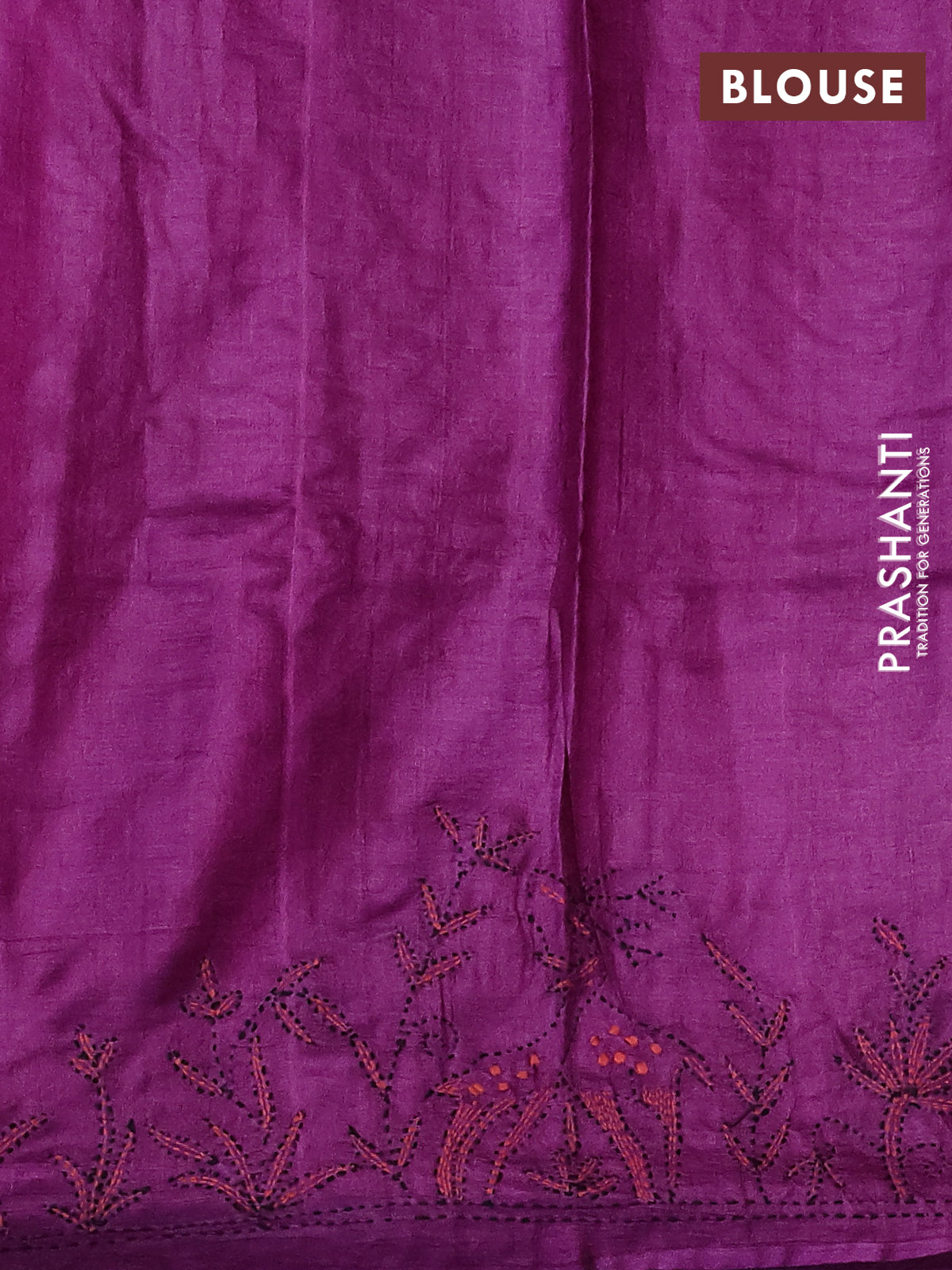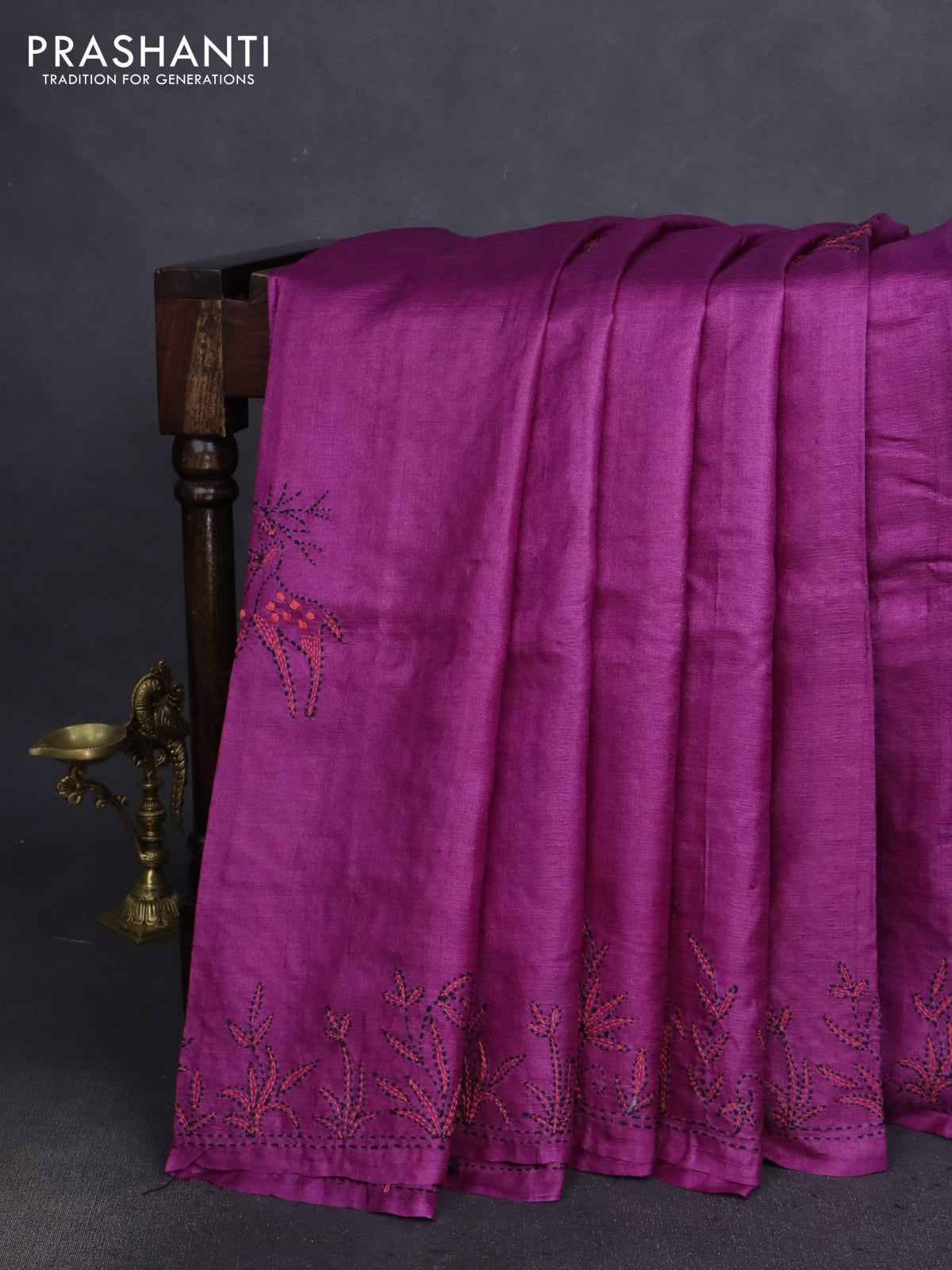 Pure tussar silk saree purple with kantha work buttas and kantha stitch work pallu
