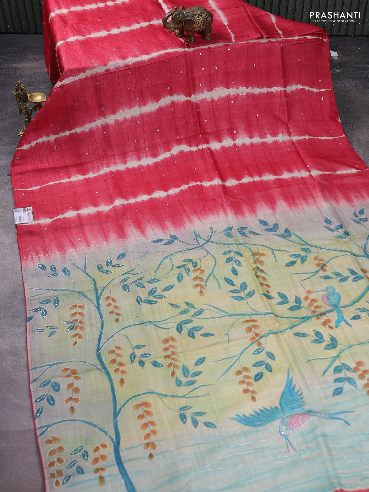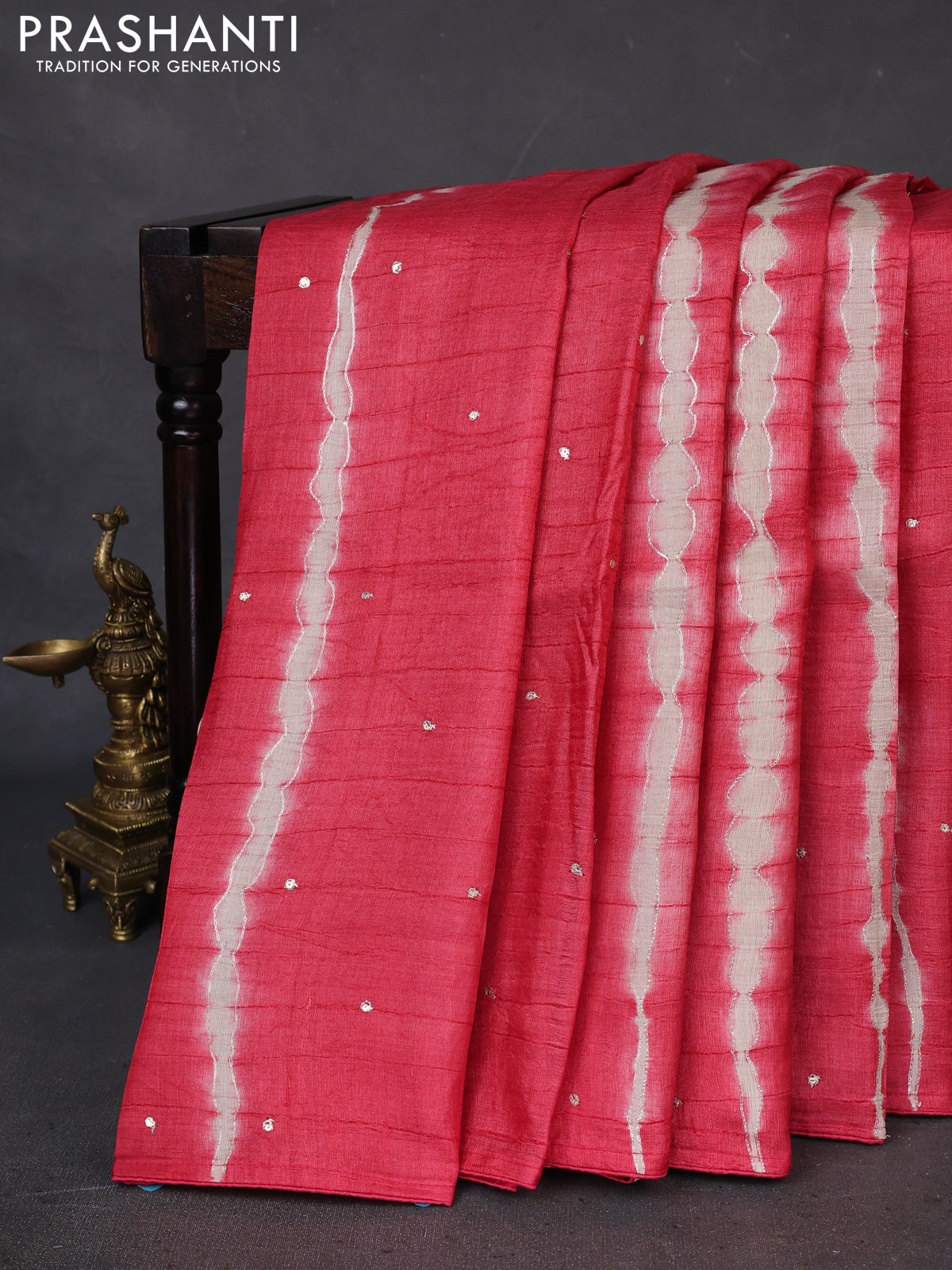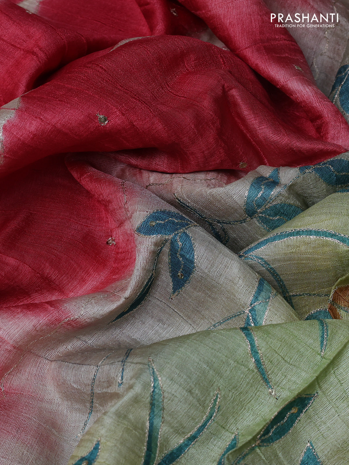Pure tussar silk saree red shade and grey shade with tie & dye prints and pita work pallu