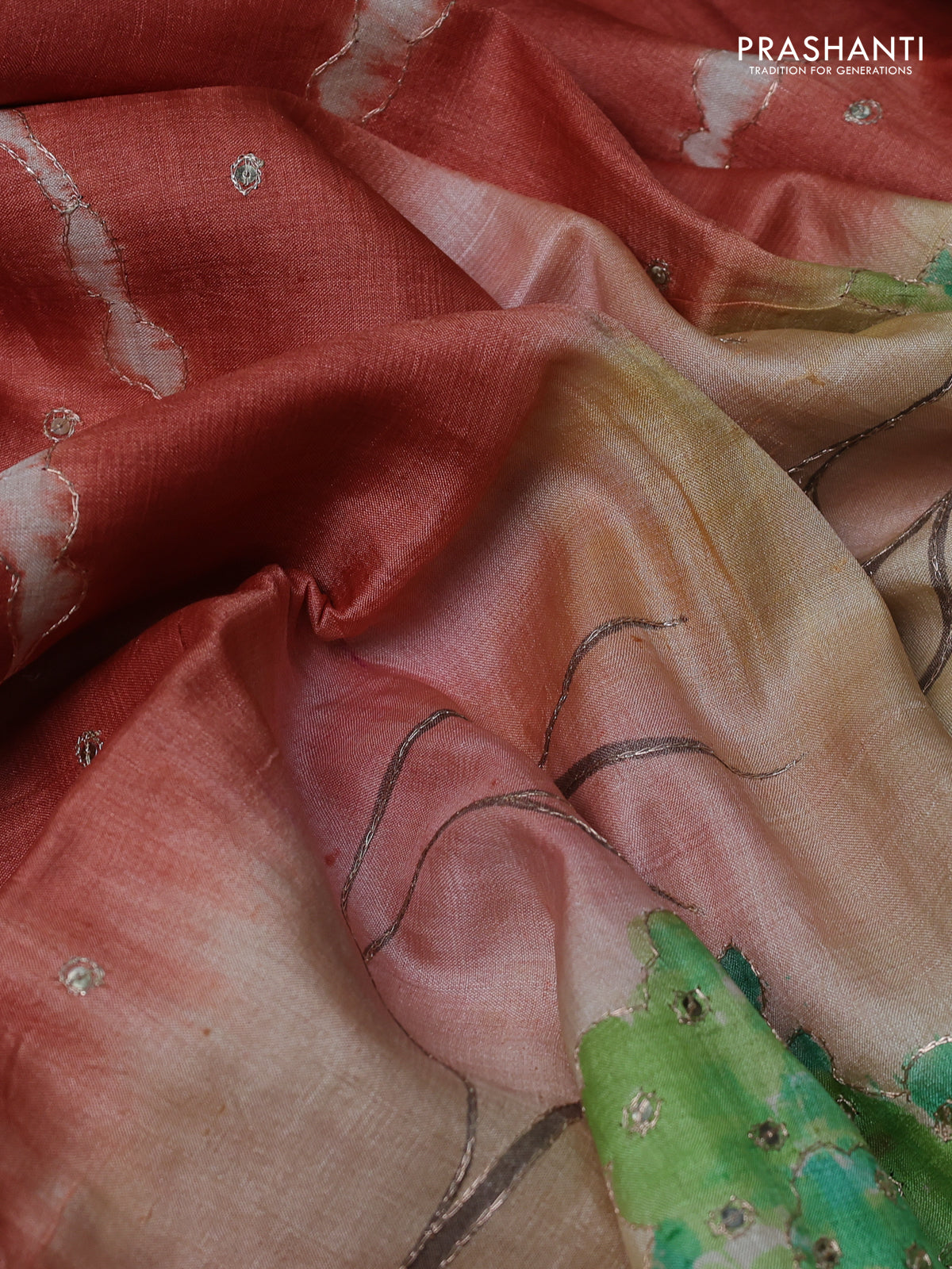 Prashanti’s Pure Tussars bring together rich textures with embroidery, hand-painted details, and contemporary digital prints, crafted for refined occasions.