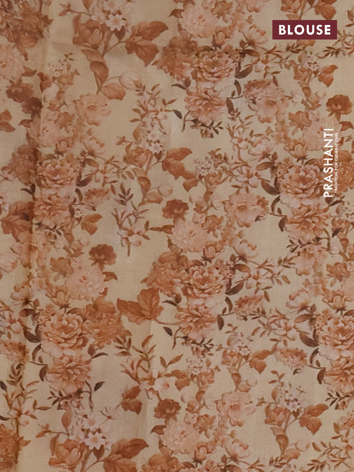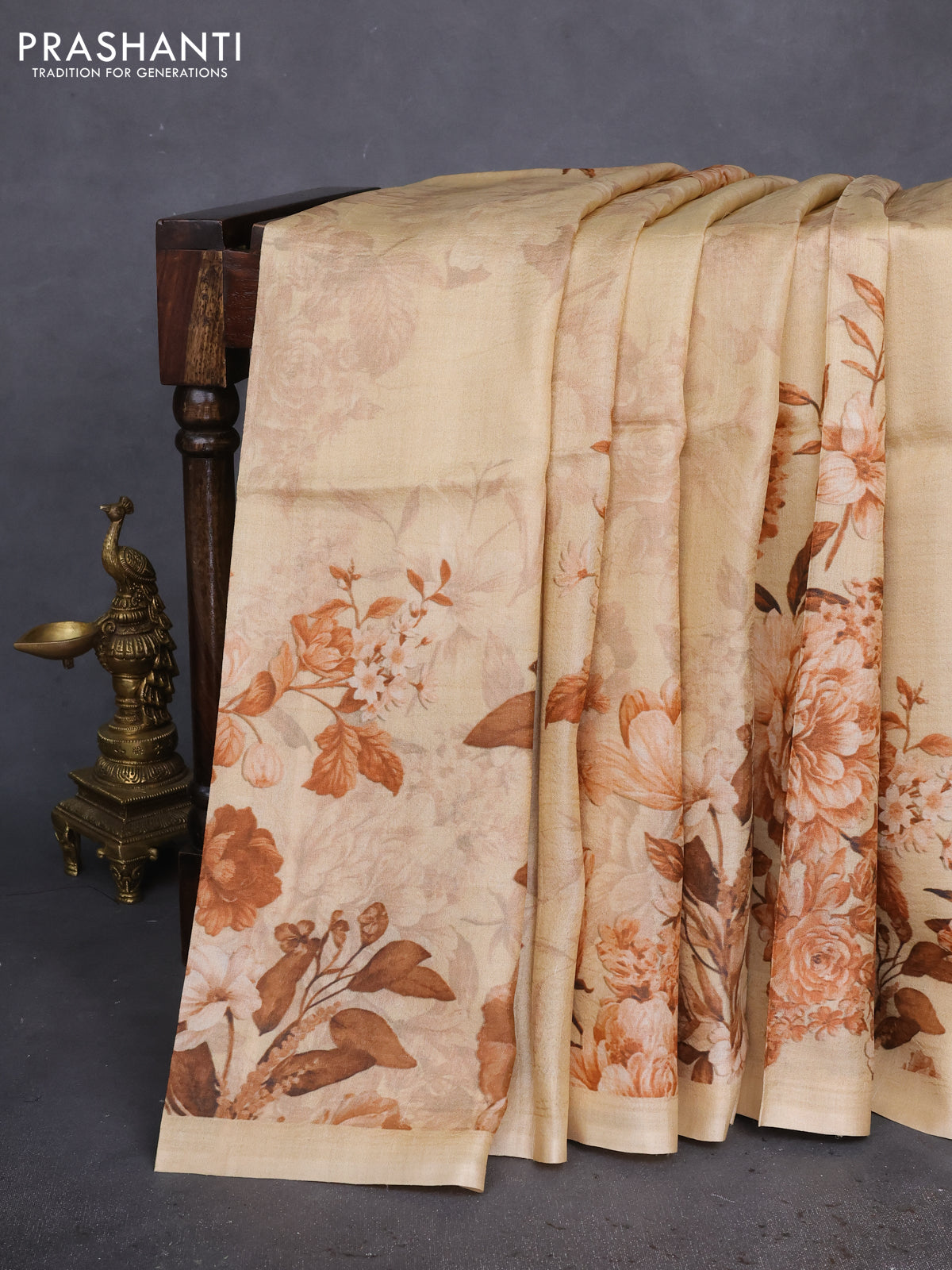 Pure tussar silk saree sandal with allover floral prints in borderless style