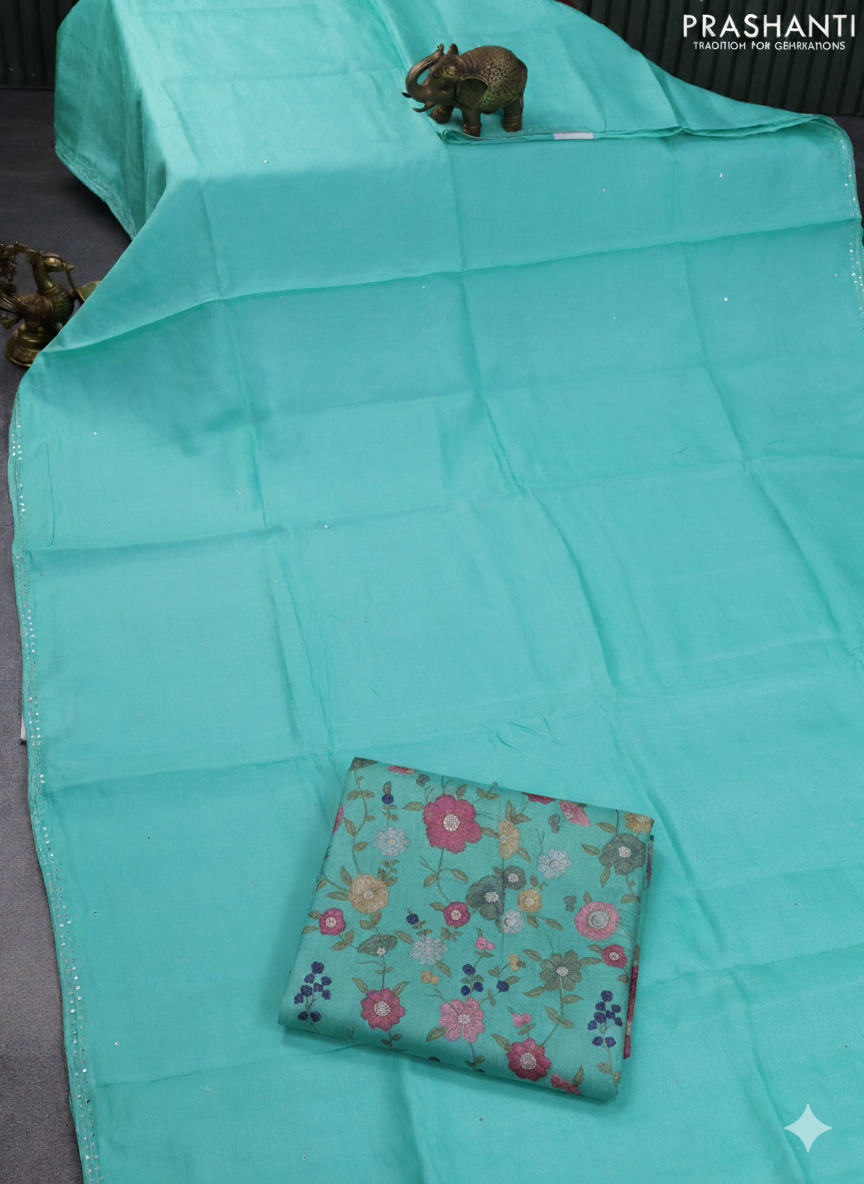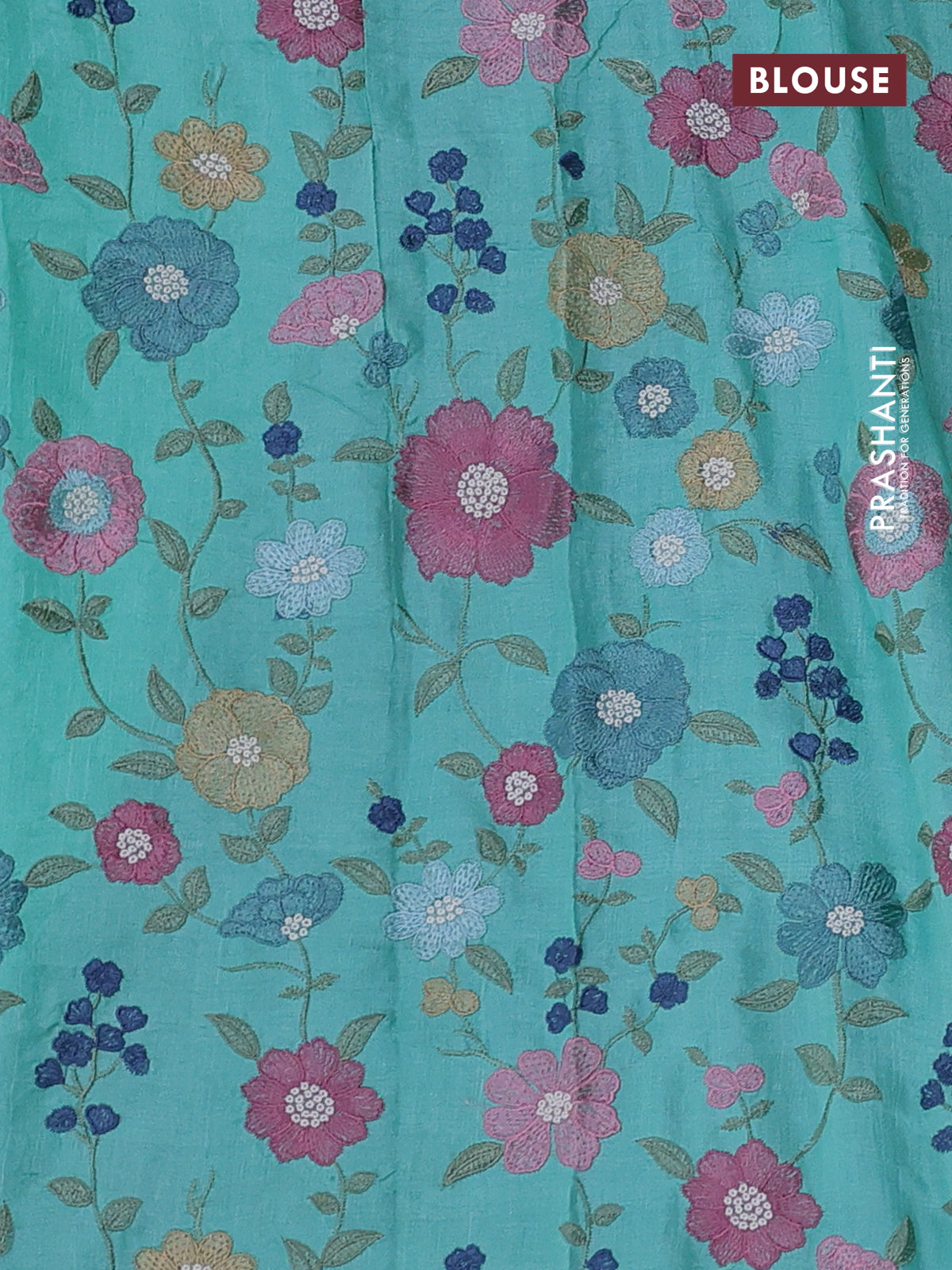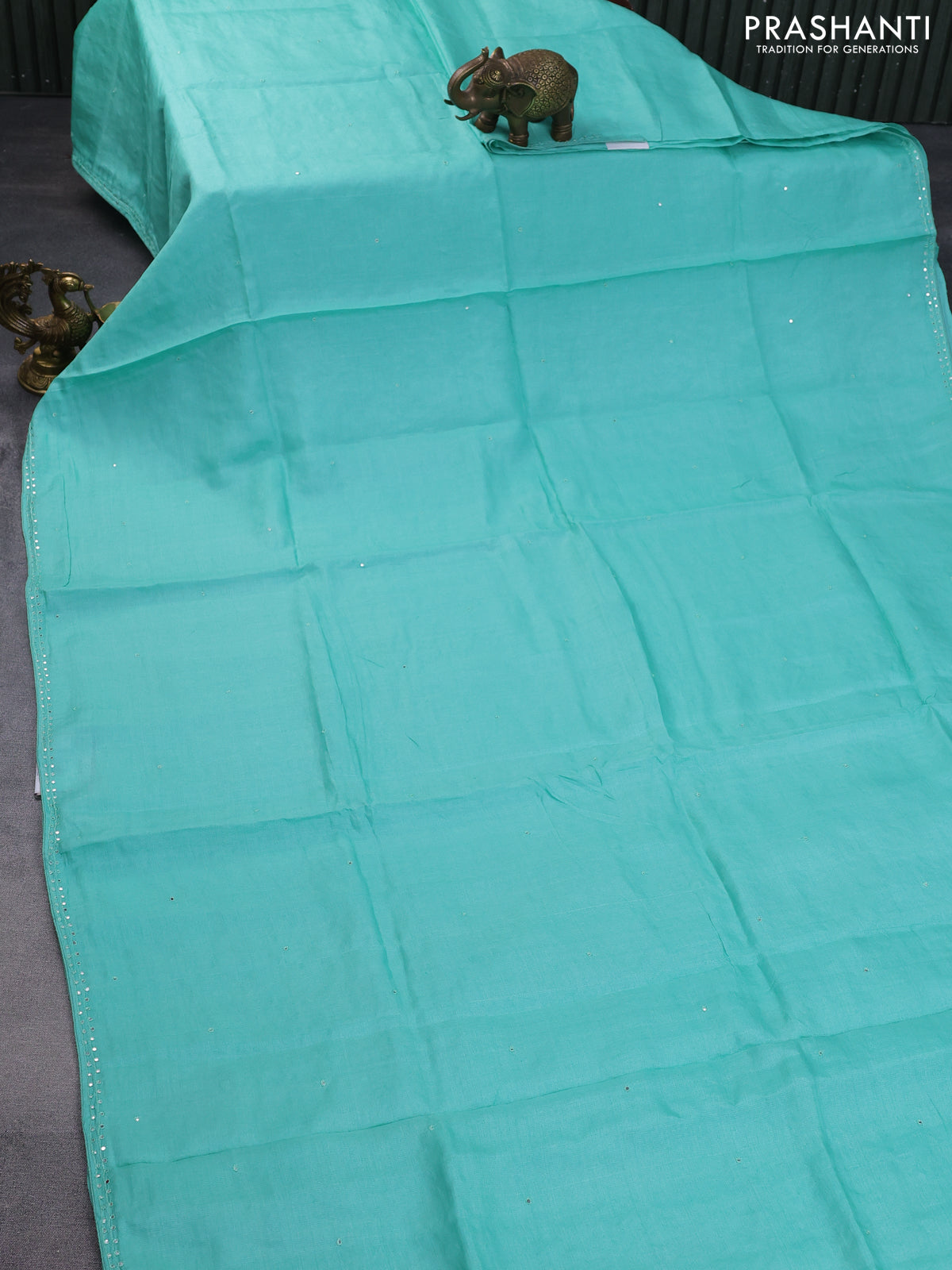 Pure tussar silk saree teal blue with mirror work and mirror work border