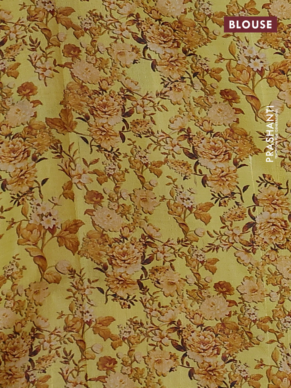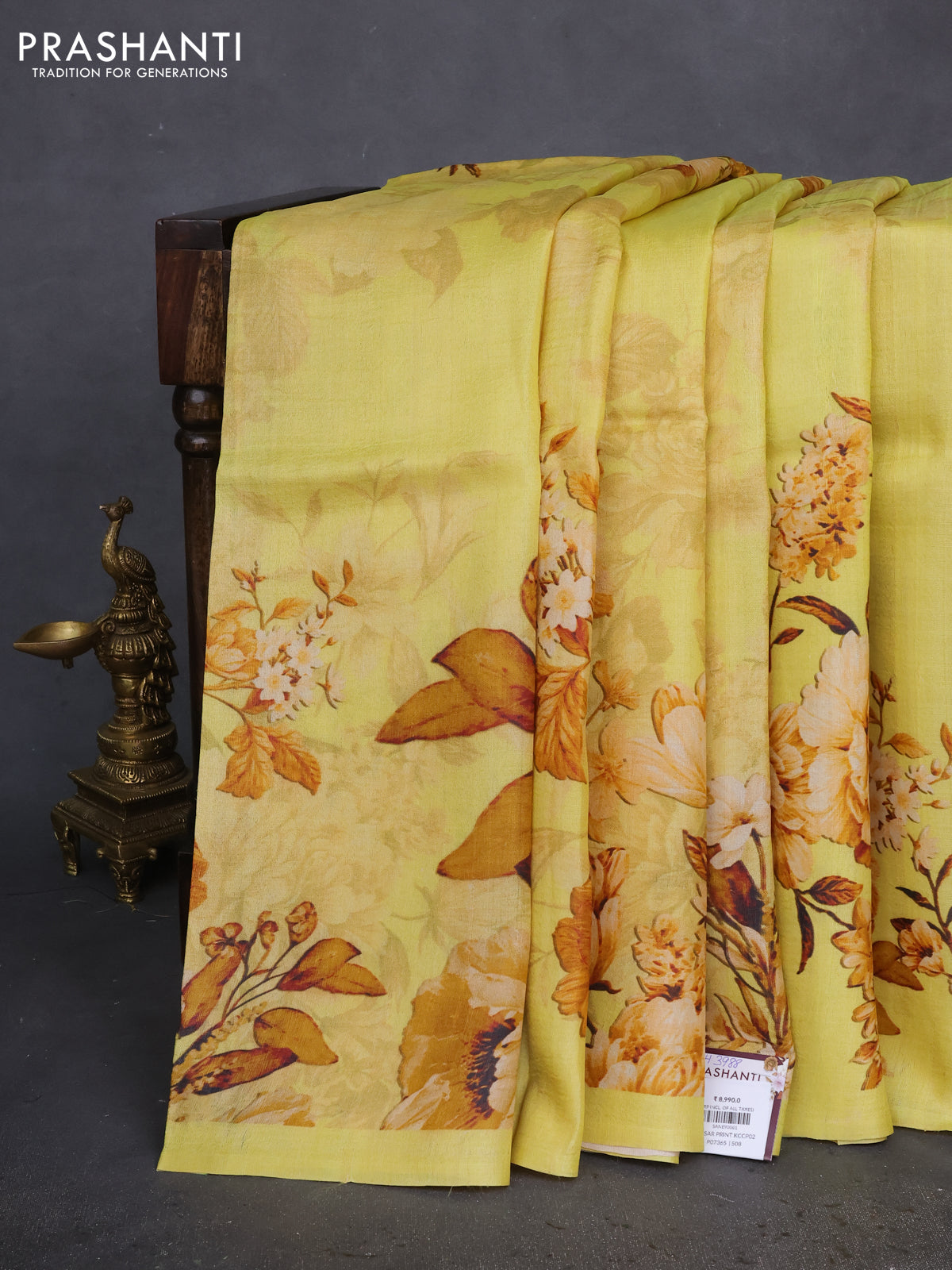 Pure tussar silk saree yellow with allover floral prints in borderless style