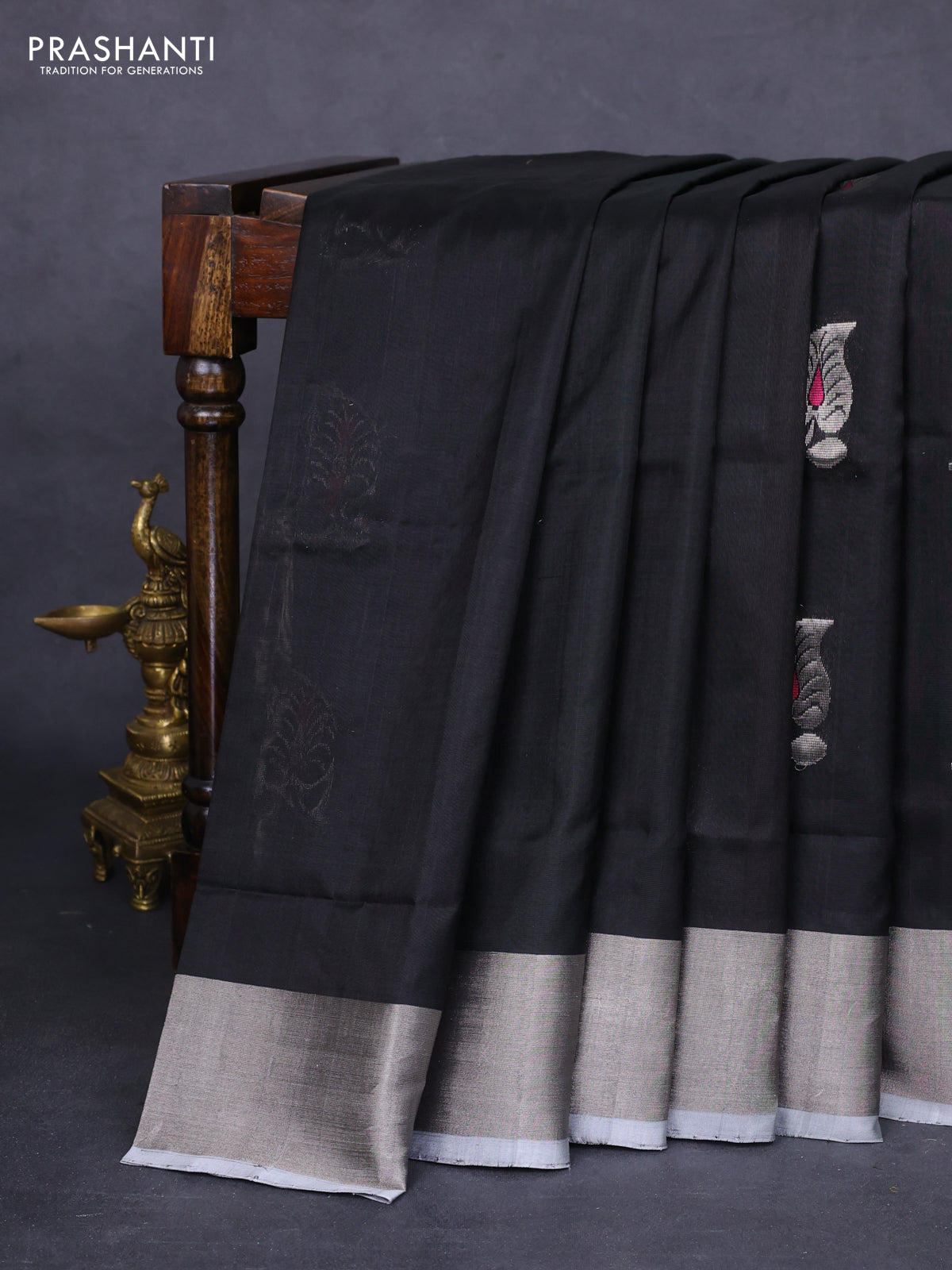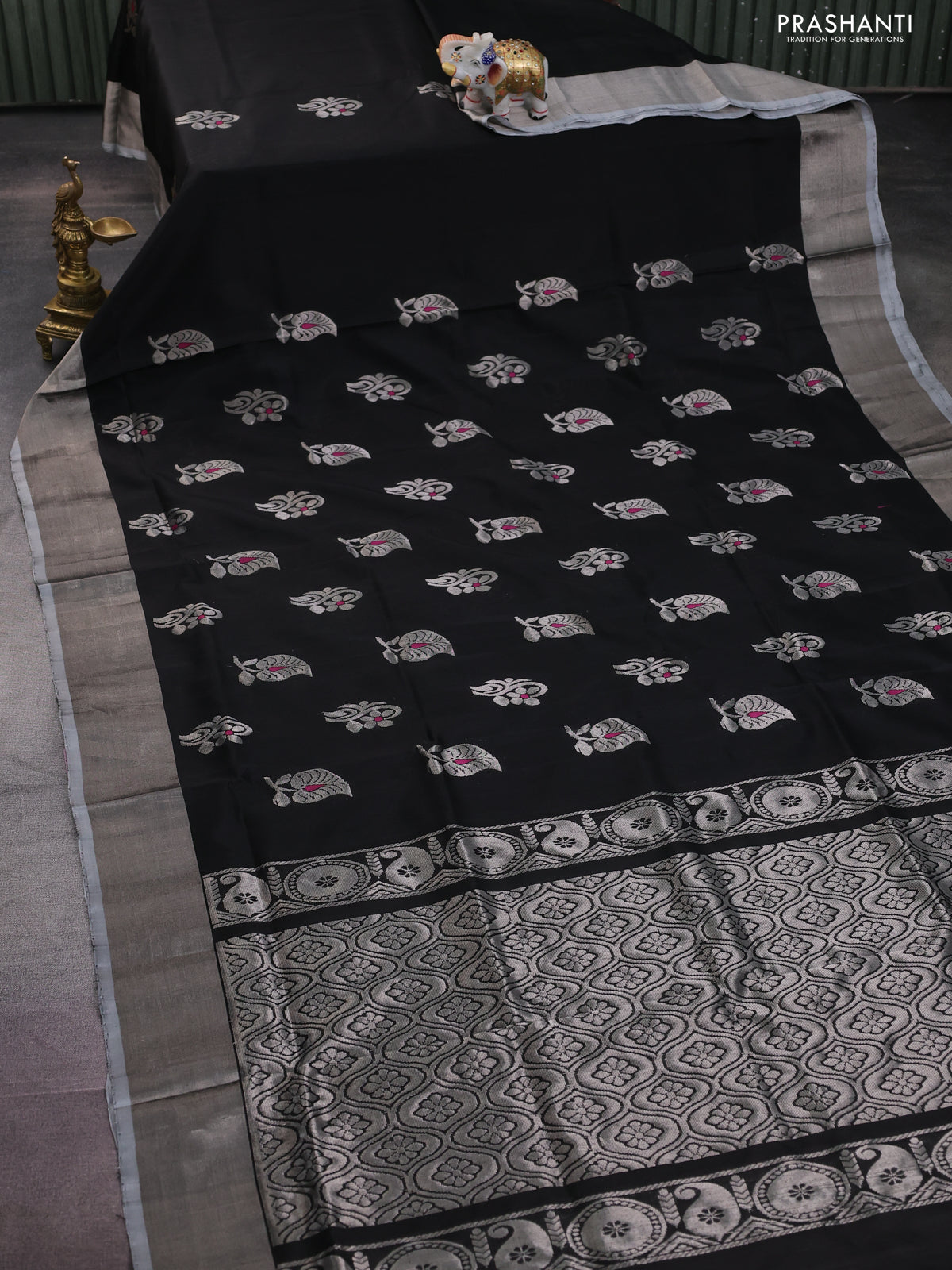Pure uppada silk saree black and grey with silver zari woven buttas and silver zari woven border
