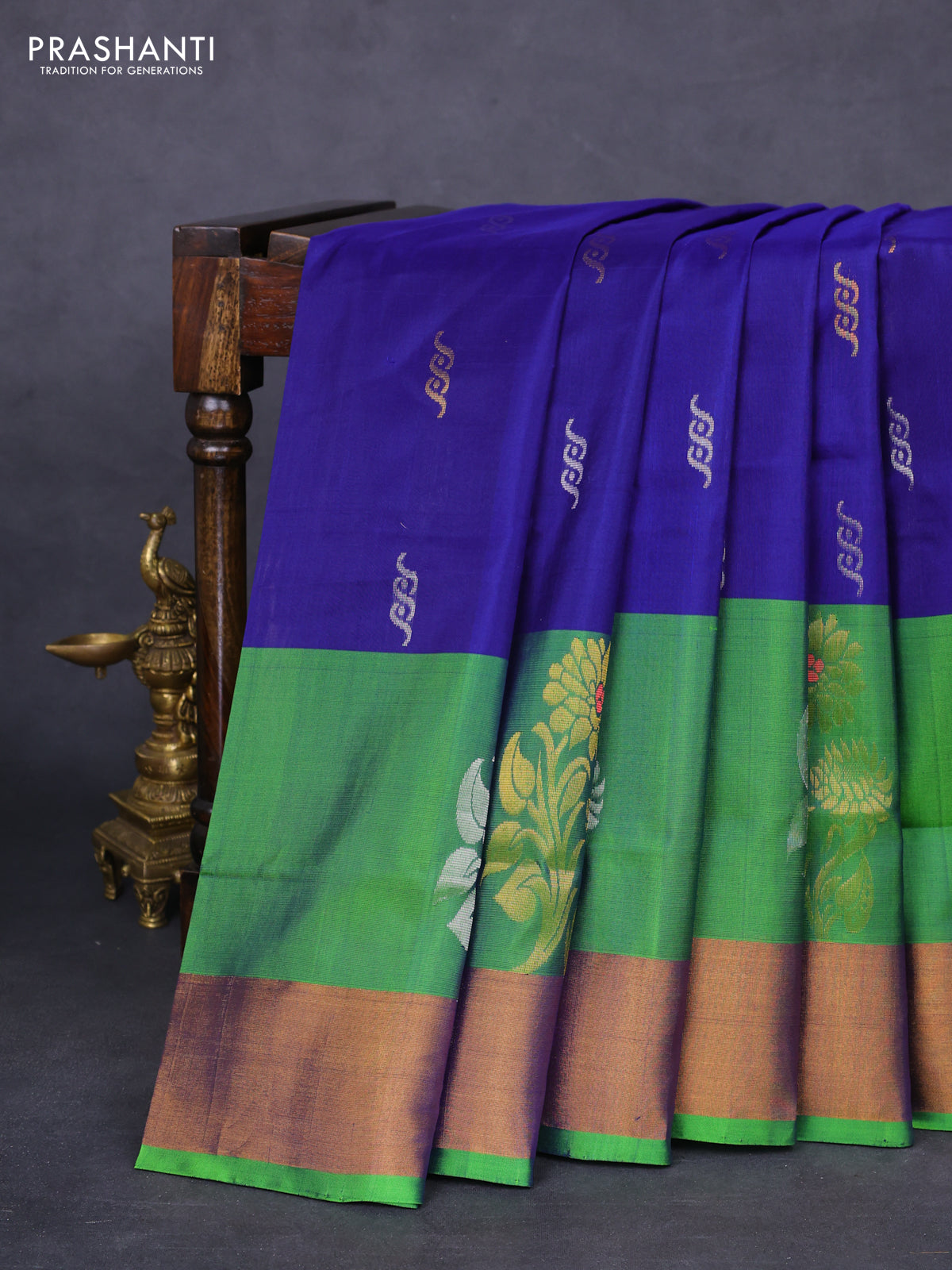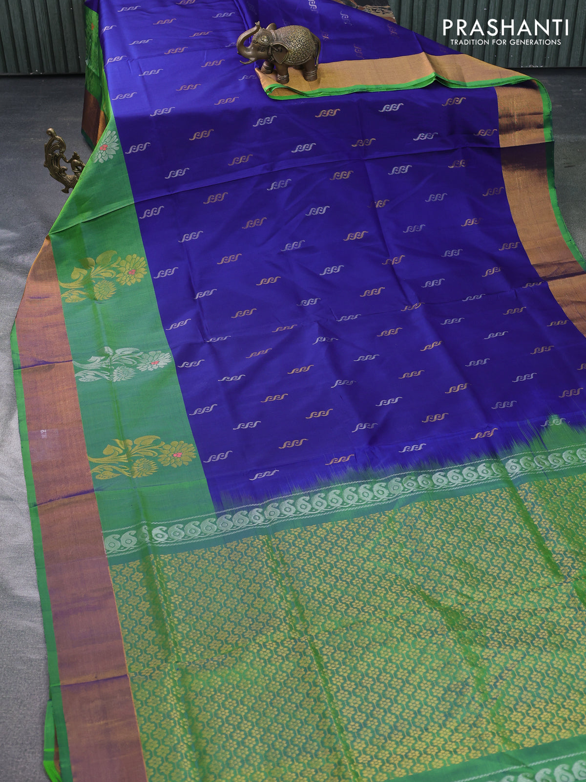 Pure uppada silk saree blue and green with silver & gold zari woven buttas and zari woven border