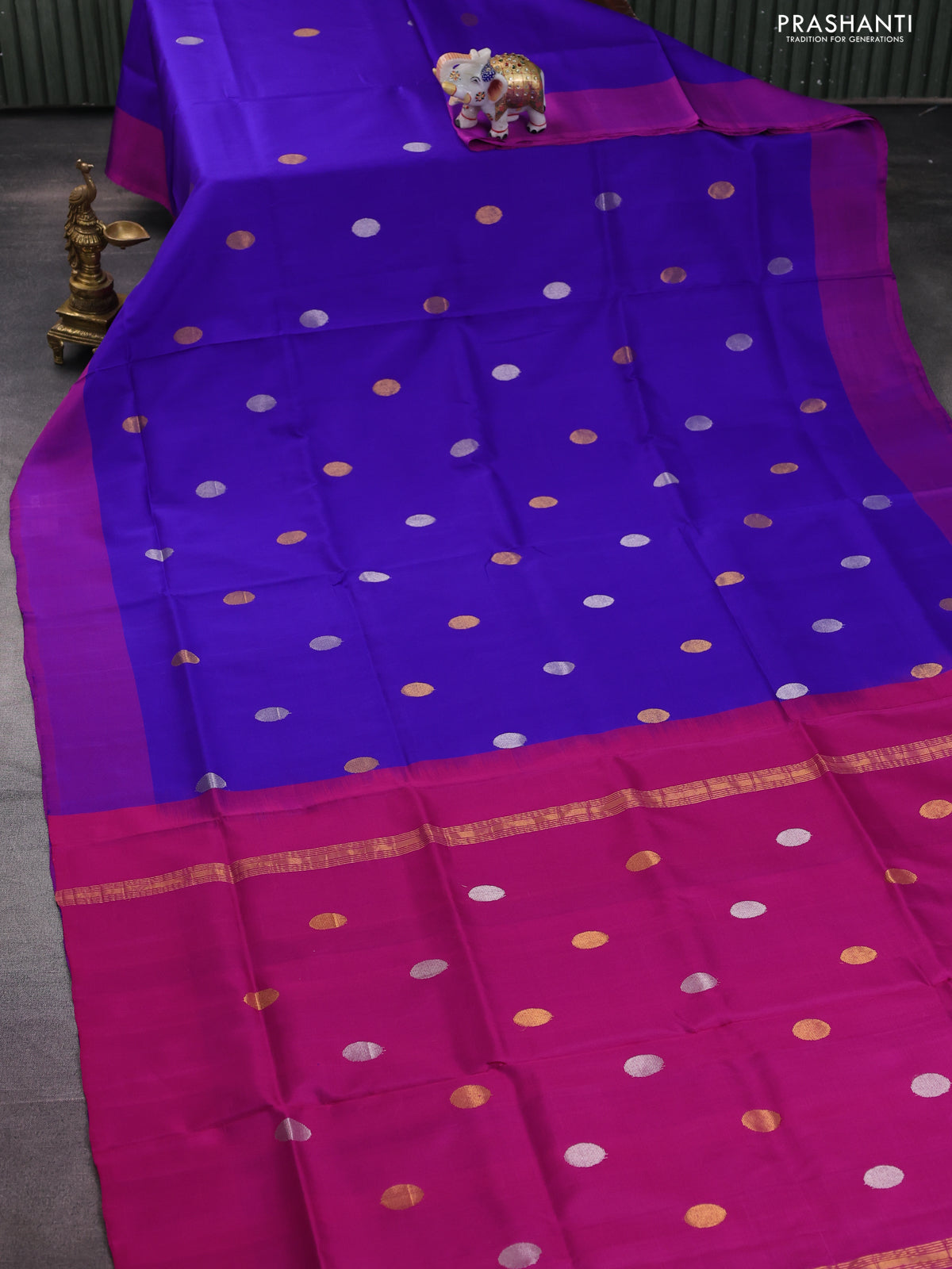 Pure uppada silk saree blue and pink with silver & gold zari woven coin buttas and simple border
