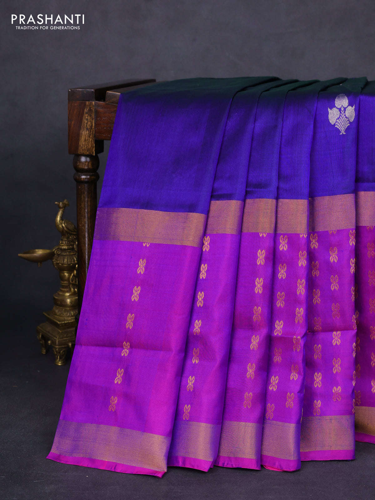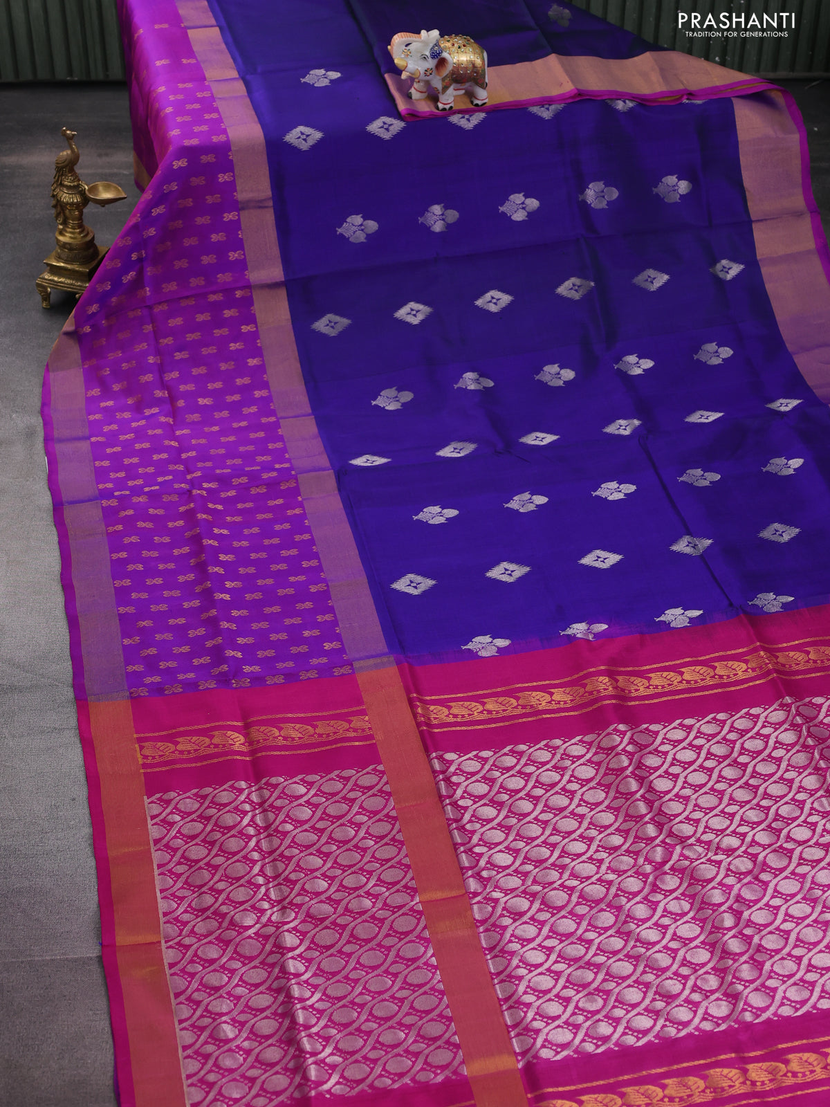 Pure uppada silk saree blue and pink with silver zari woven buttas and long zari woven butta border