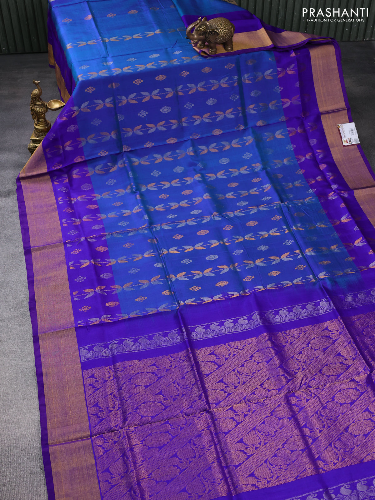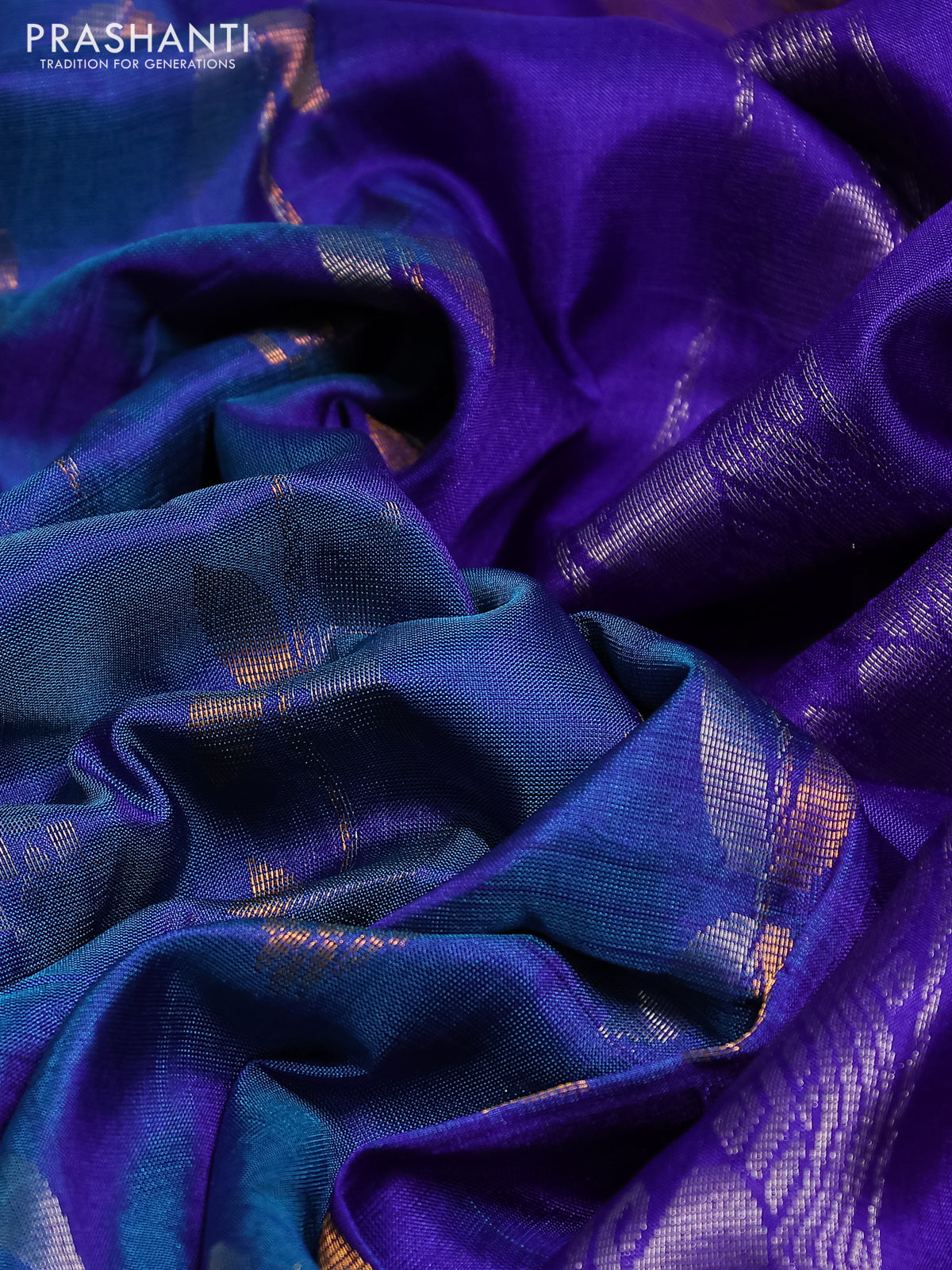 Pure uppada silk saree blue and violet with allover zari weaves & buttas and zari woven border
