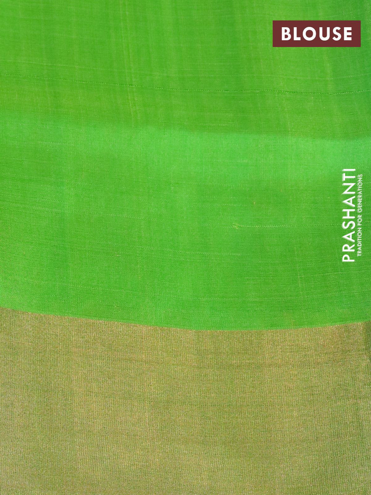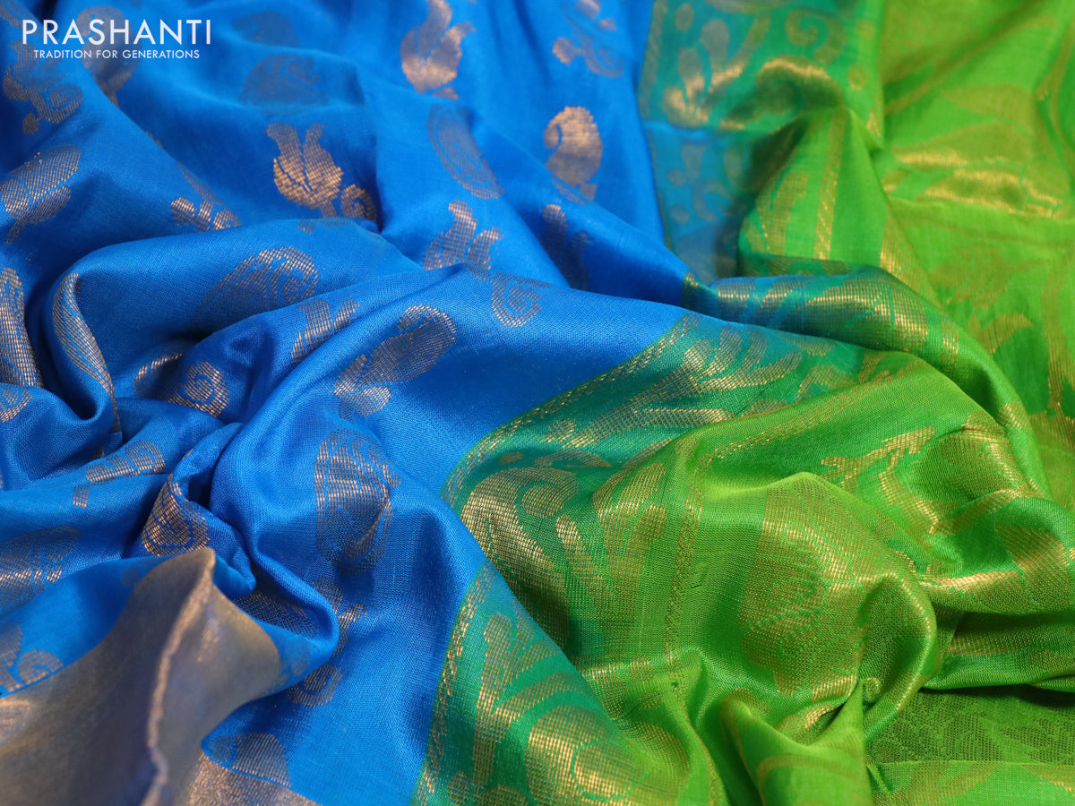 Pure uppada silk saree cs blue and parrot green with allover zari woven paisley buttas and long zari woven border