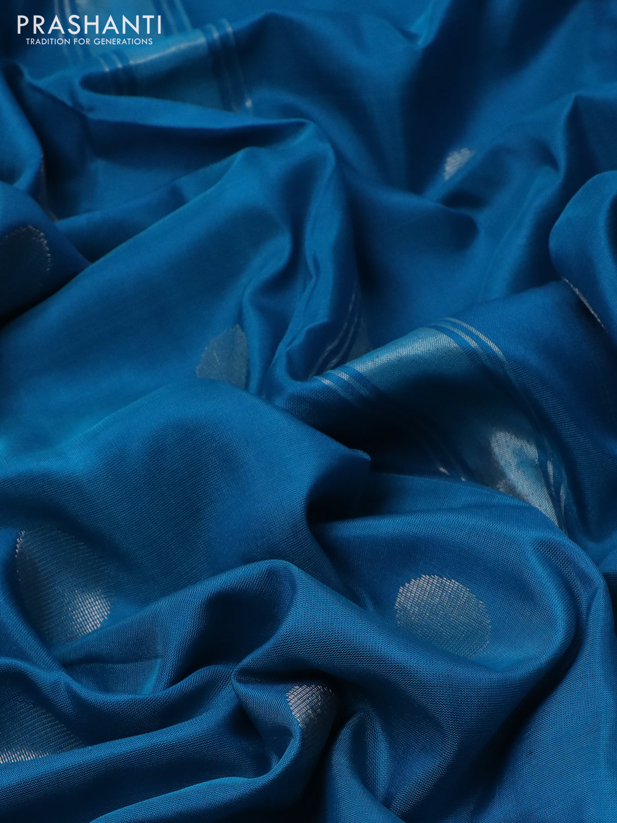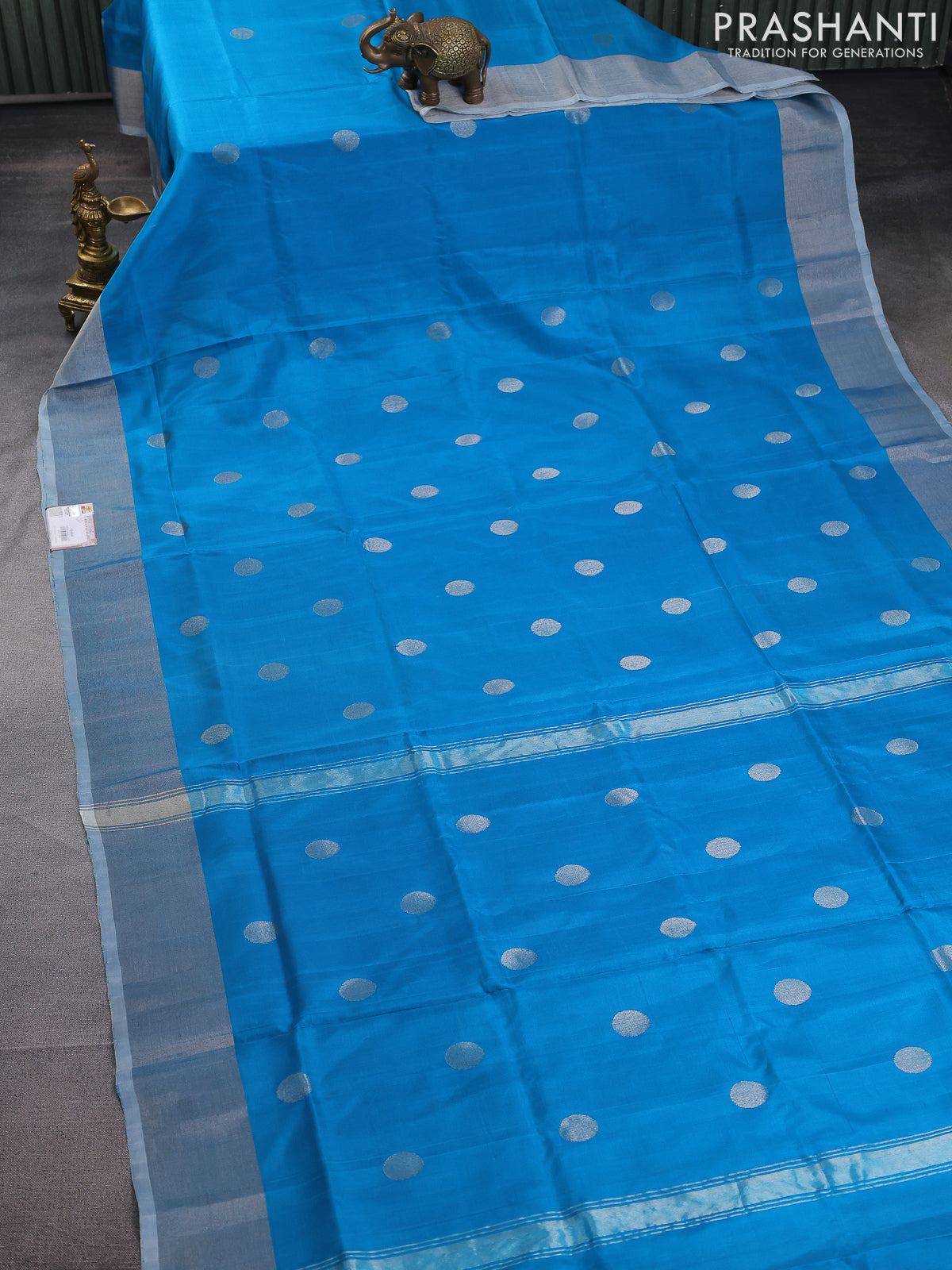 Pure uppada silk saree cs blue with silver zari woven coin buttas and silver zari woven border