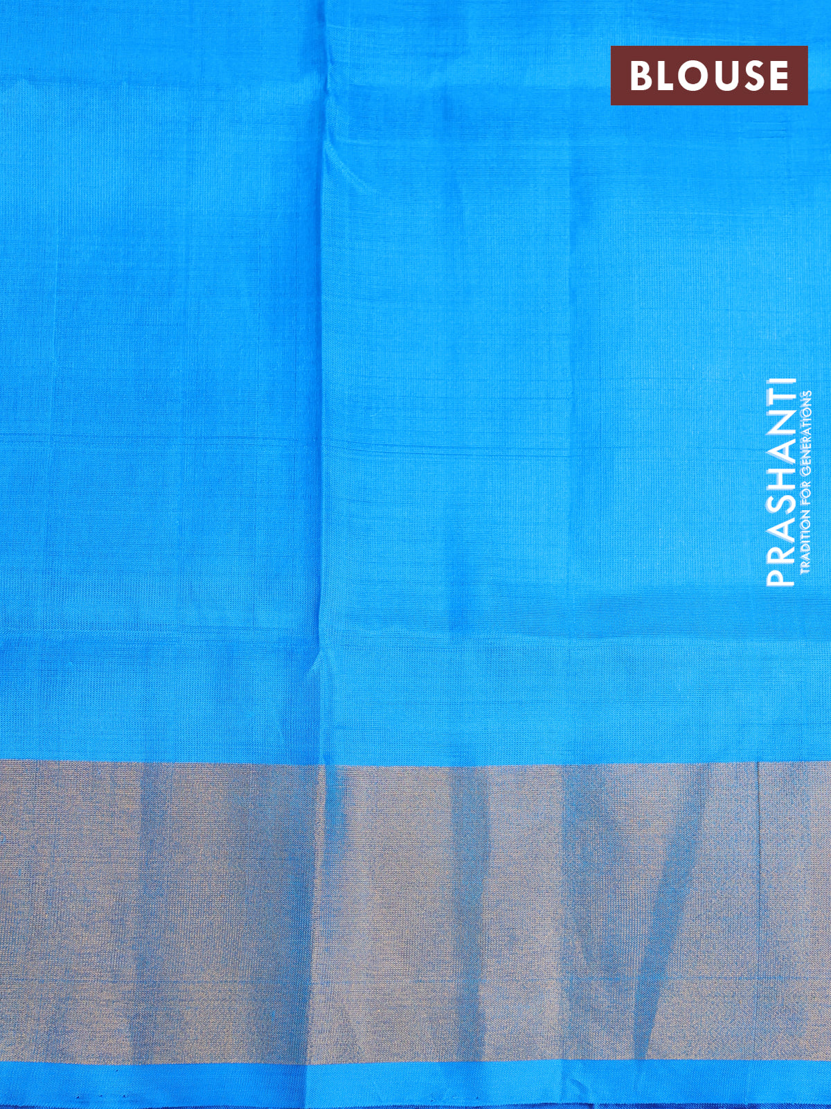 Pure uppada silk saree dark blue and cs blue with allover silver & gold zari weaves and long peacock design zari woven border