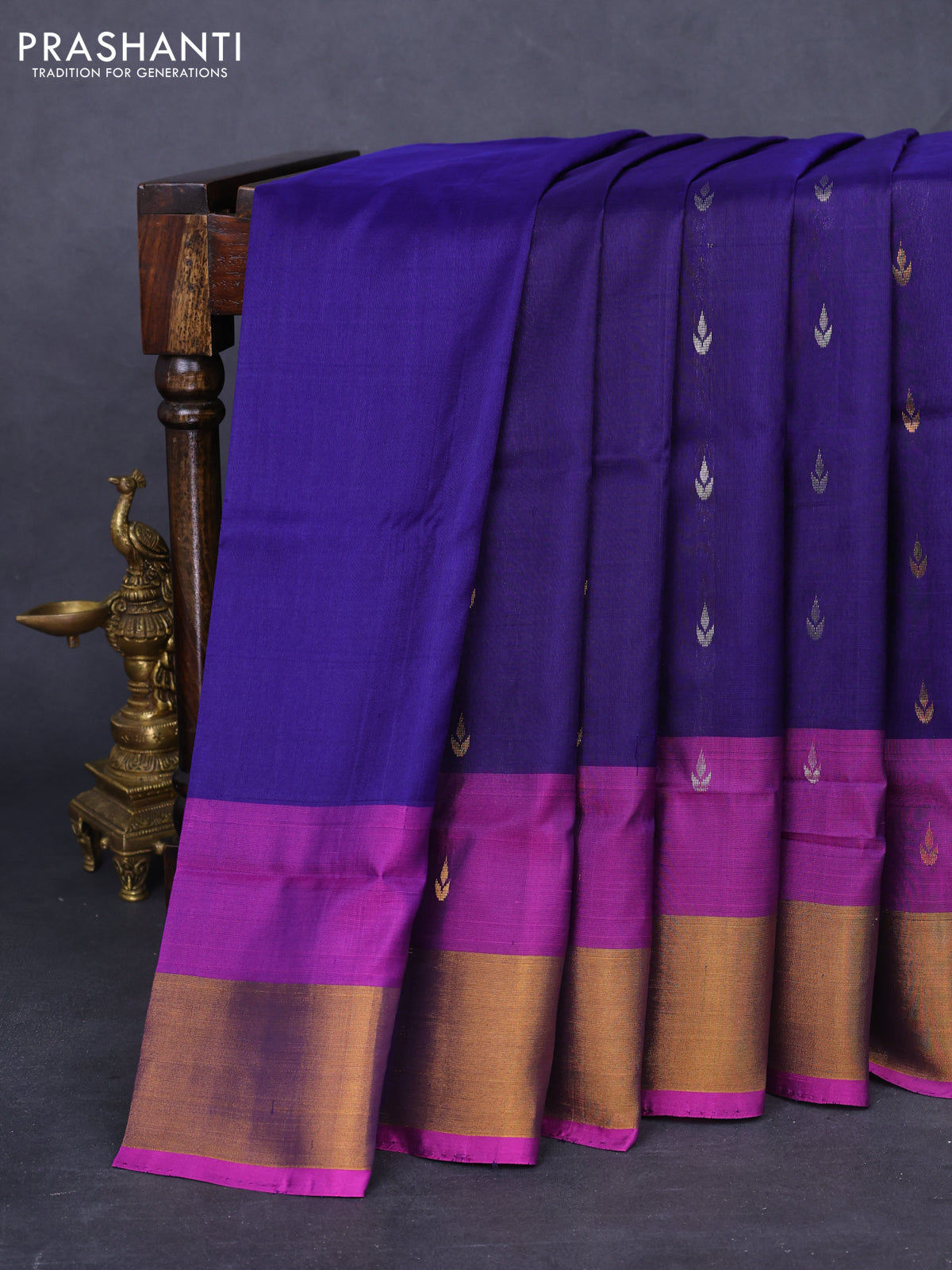 Pure uppada silk saree dark blue and pink with silver & gold zari woven buttas and zari woven border