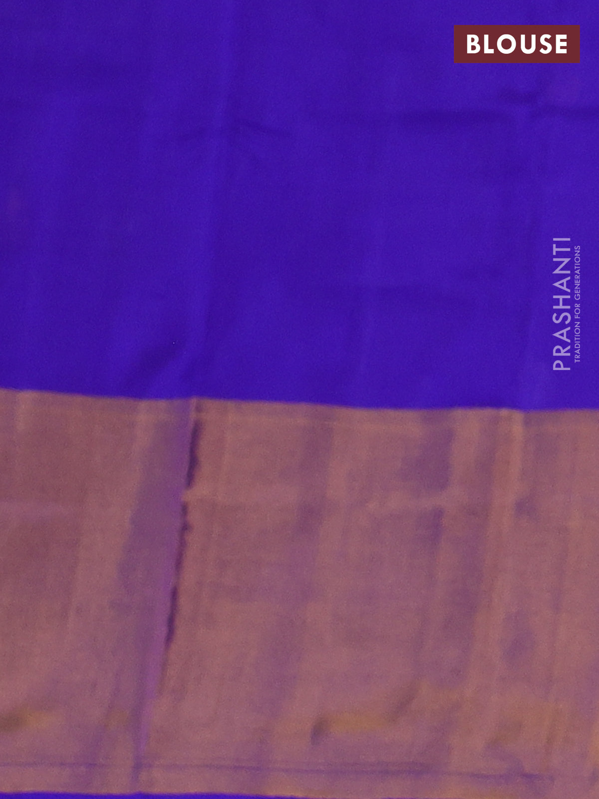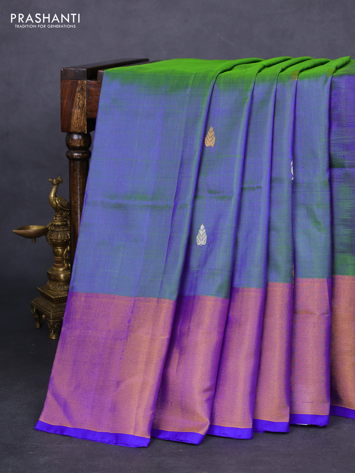 Pure uppada silk saree dual shade of greenish blue and blue with silver & gold zari woven buttas and long zari woven border