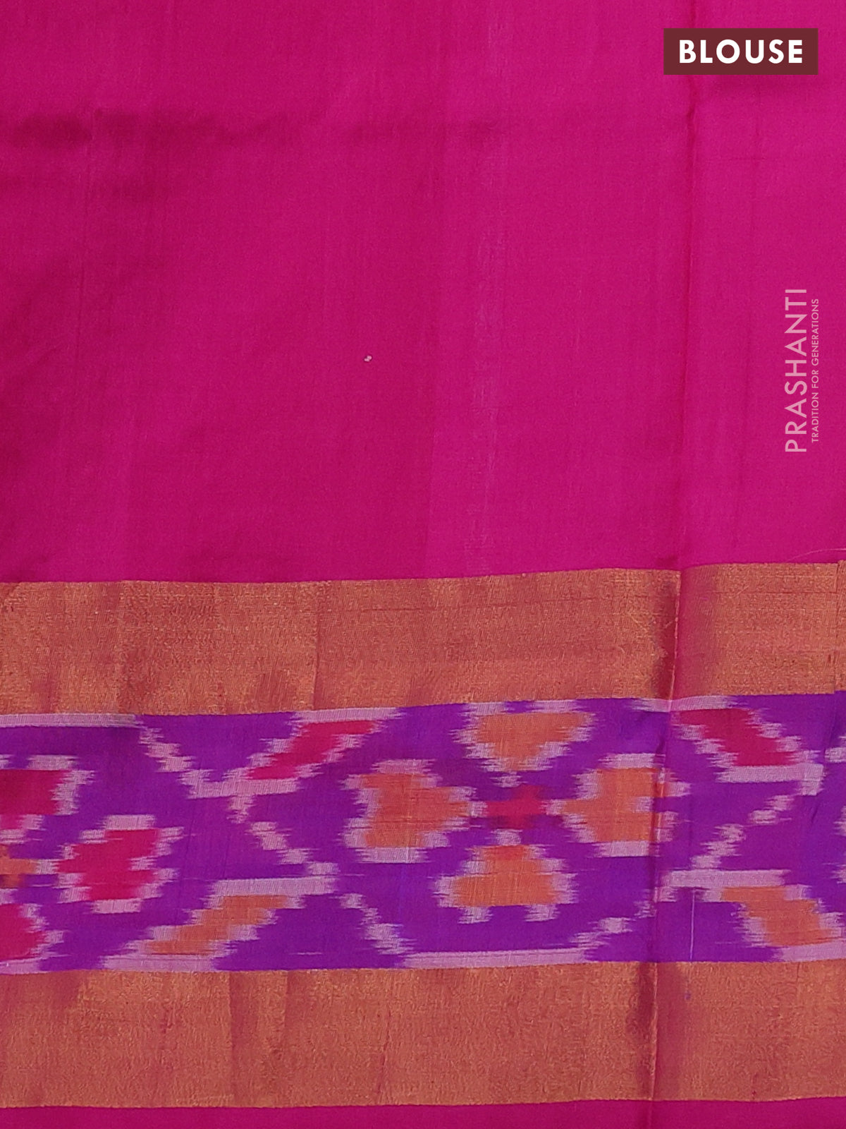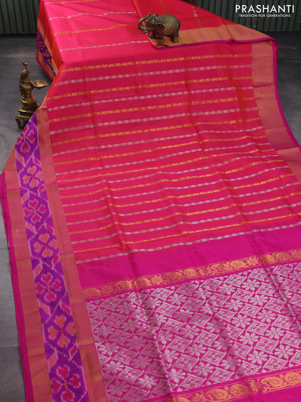 Pure uppada silk saree dual shade of pink and pink with allover silver & gold zari weaves and zari woven ikat style border