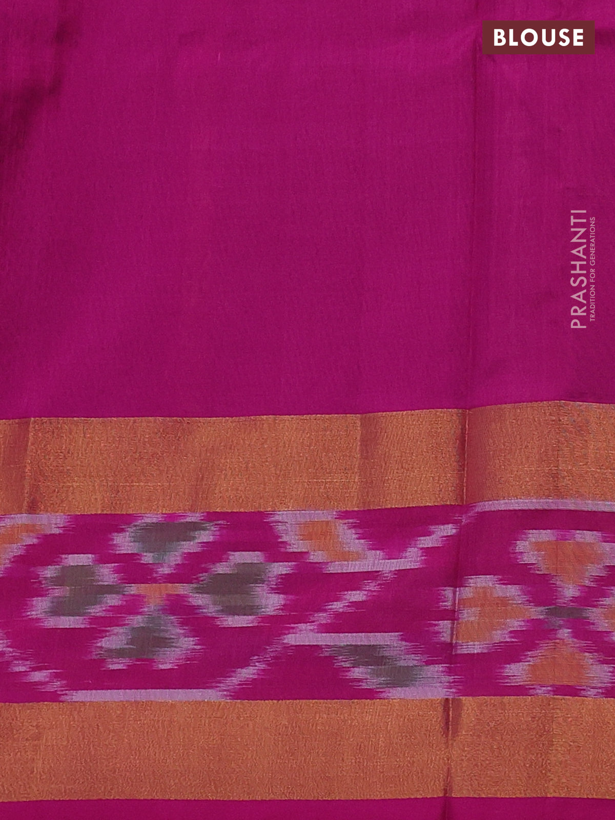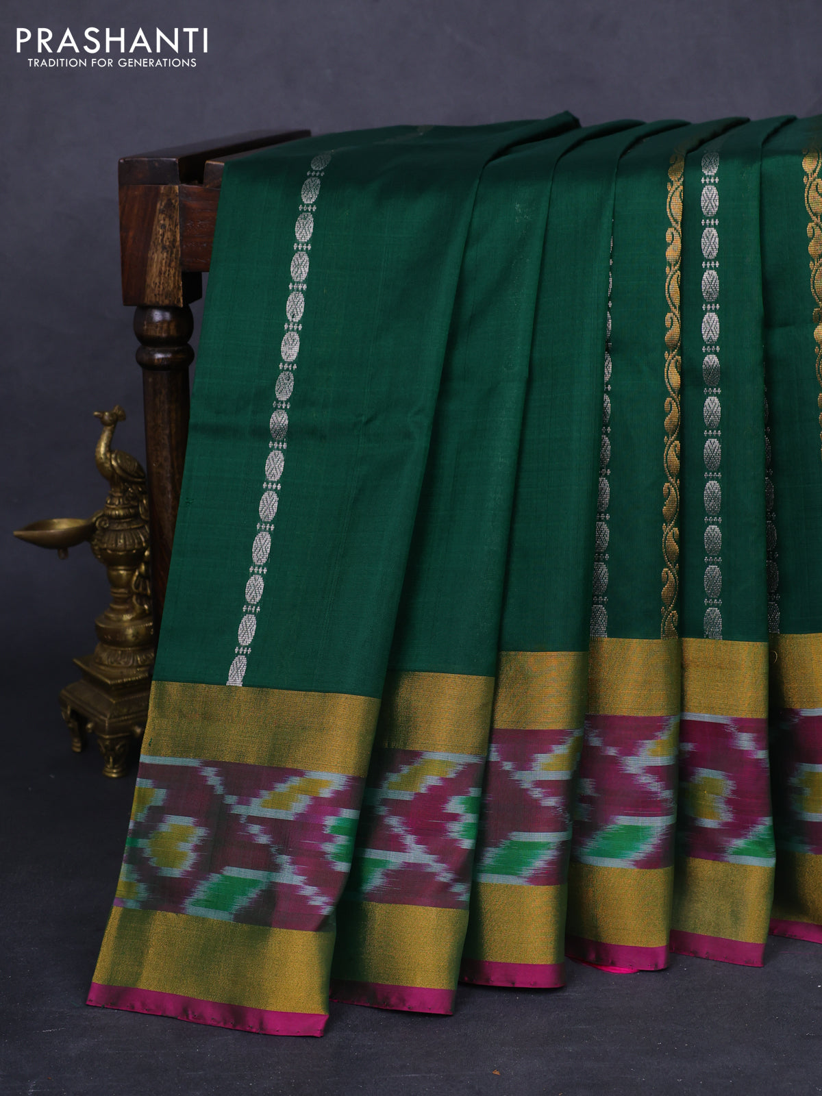 Pure uppada silk saree green and magenta pink with allover silver & gold zari weaves and zari woven ikat style border