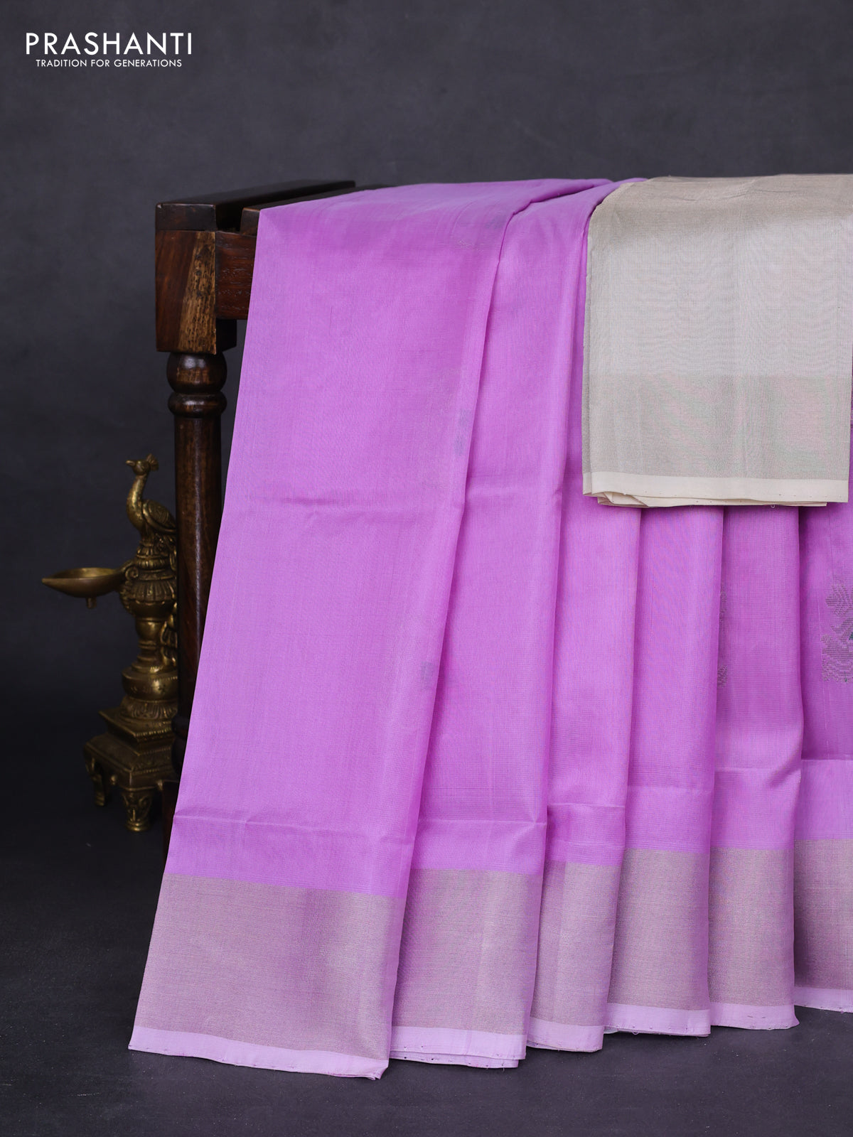 Pure uppada silk saree lavender with silver zari woven buttas and silver zari woven border