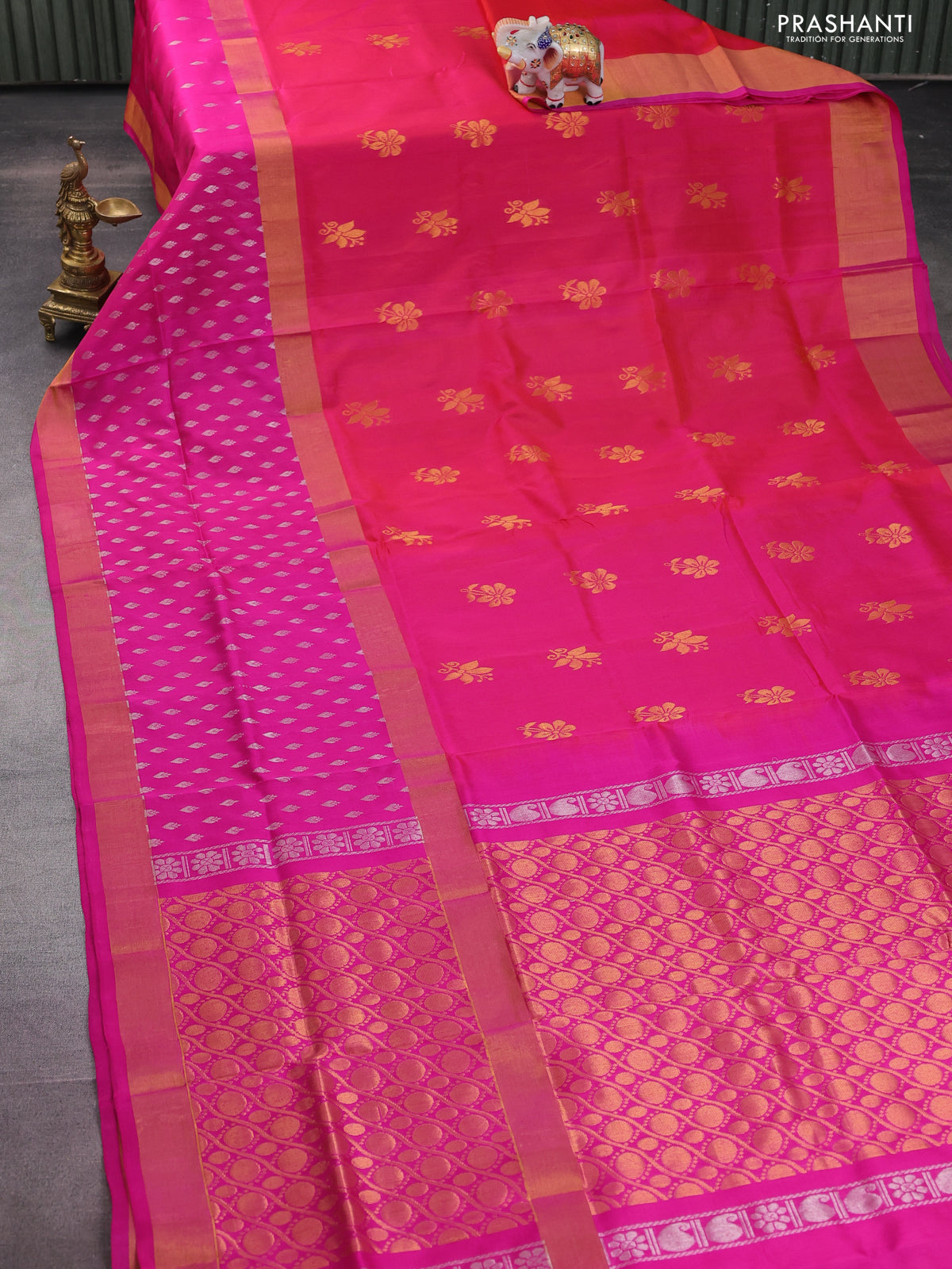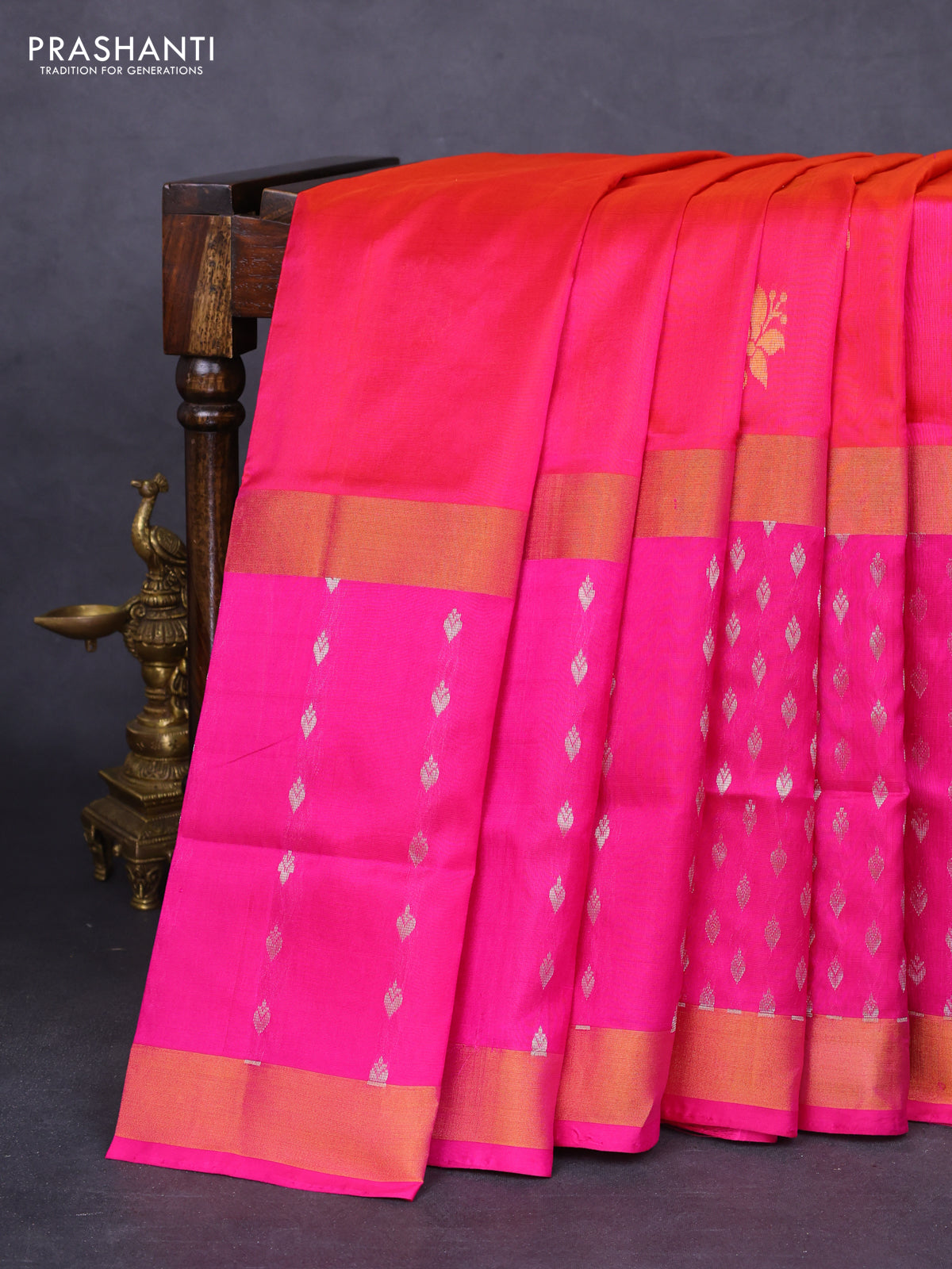 Pure uppada silk saree orange and pink with zari woven floral buttas and zari woven butta border